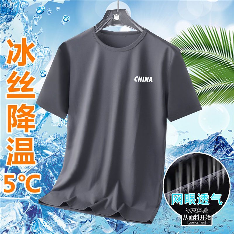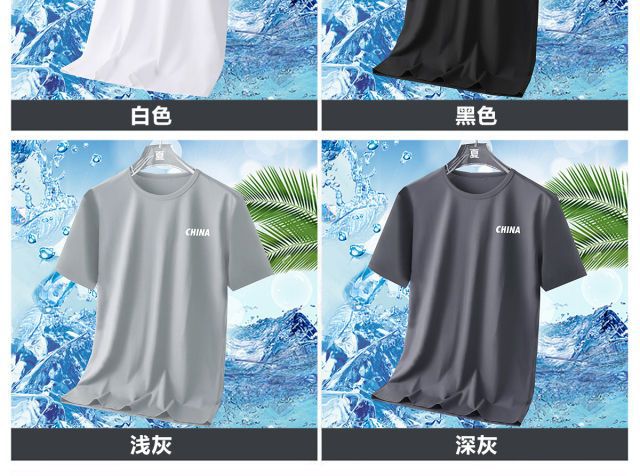 아이스 실크 반팔 티셔츠 남성 여름 느슨한 대형 남성 캐주얼 다목적 티셔츠 한국 스타일 유행 의류 남성 T스토어 가기