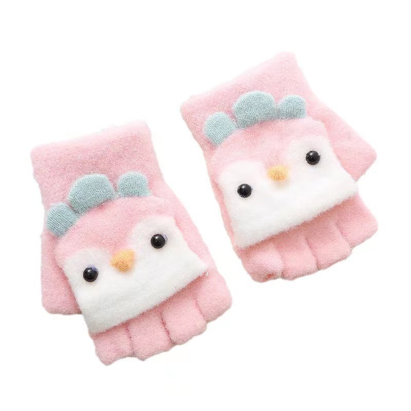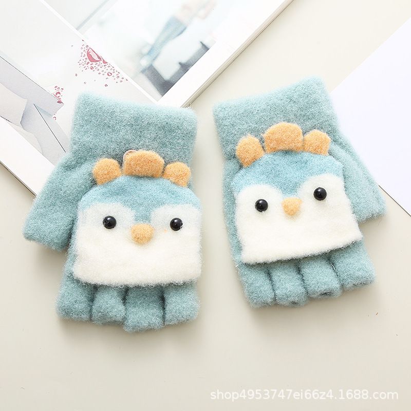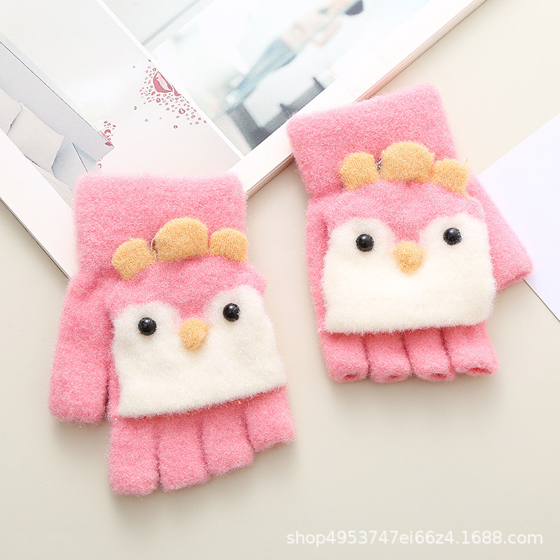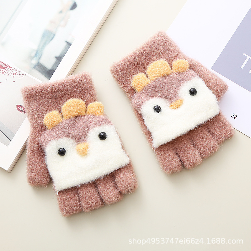 겨울 어린이 패션 장갑 펭귄 플립 반 손가락 장갑 학생을위한 귀여운 재미있는 아기 따뜻한 글쓰기 장갑