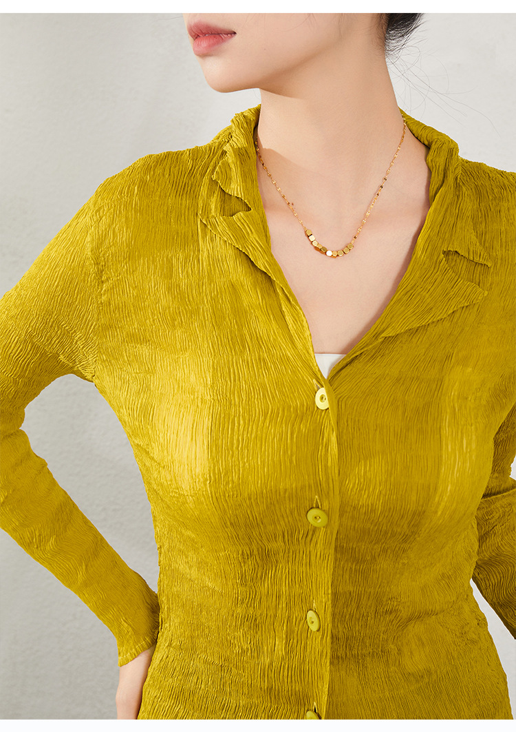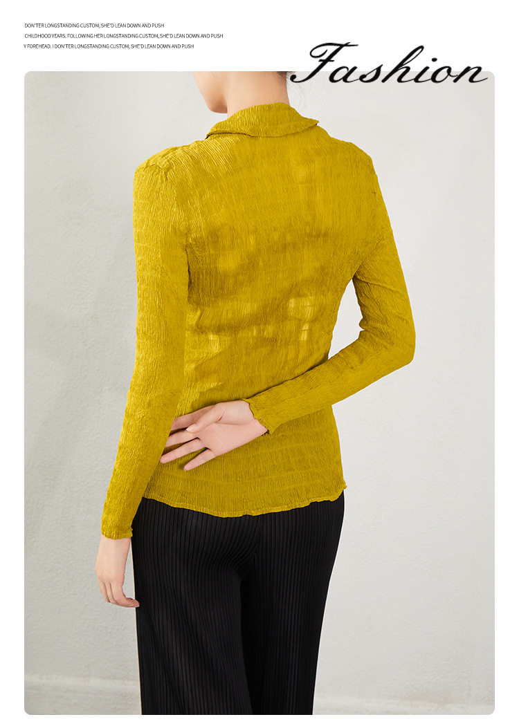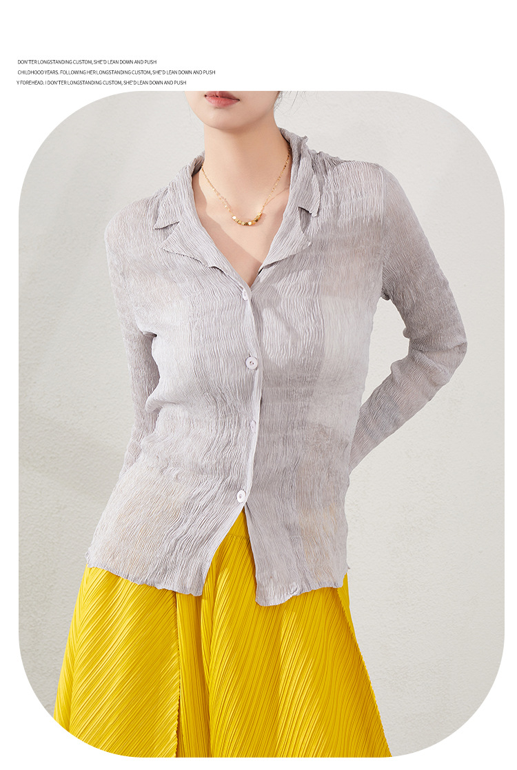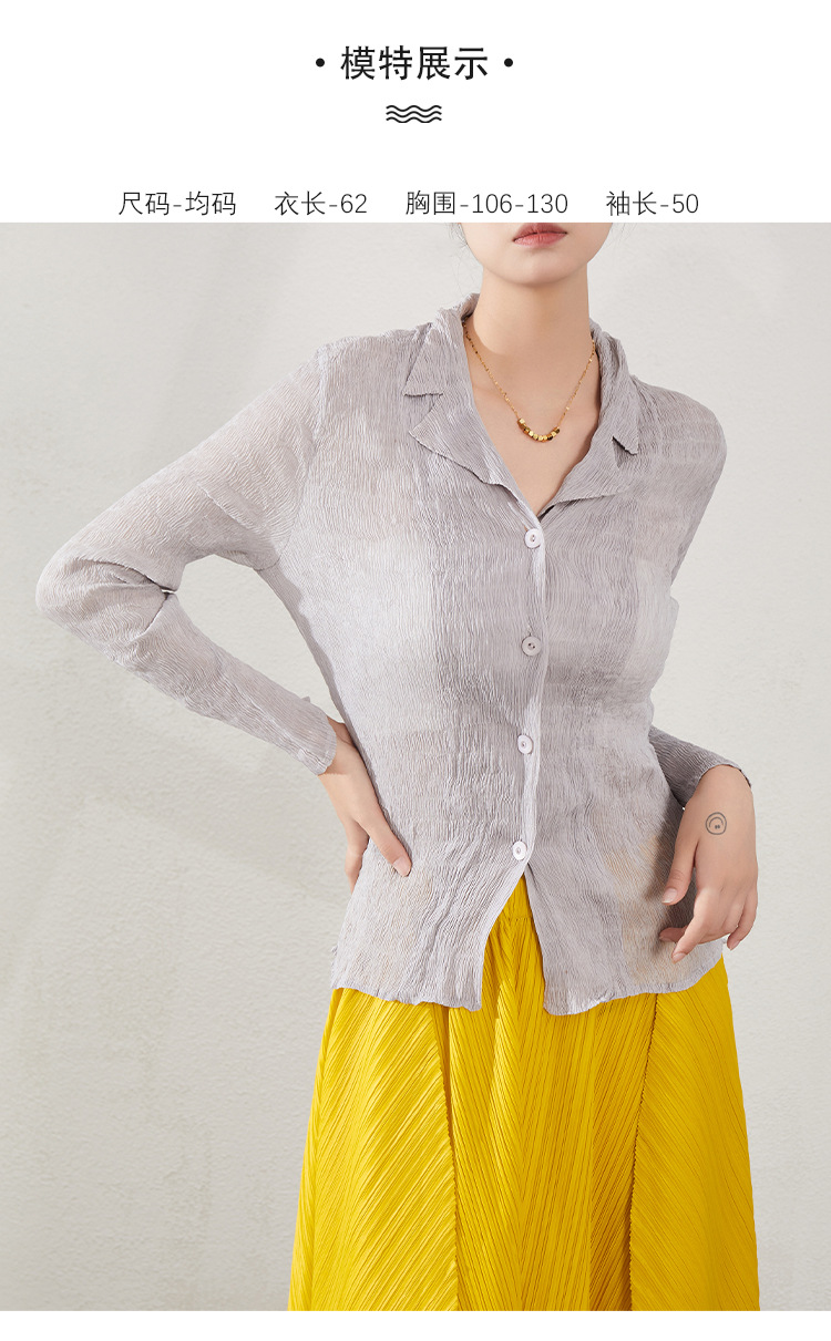 블랙 긴팔 쉬폰 셔츠 여성용 봄 가을 2026 신상 미야케 스타일 루즈핏 큰 사이즈 슬리밍 V넥 탑