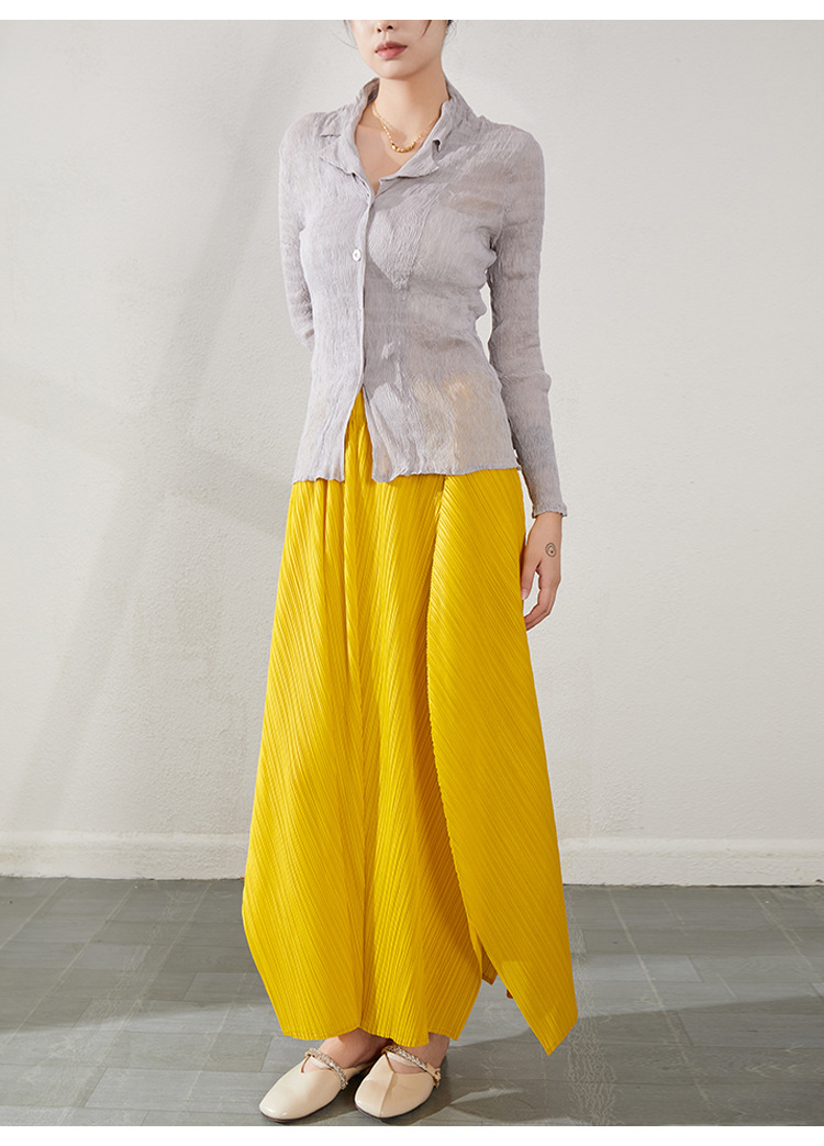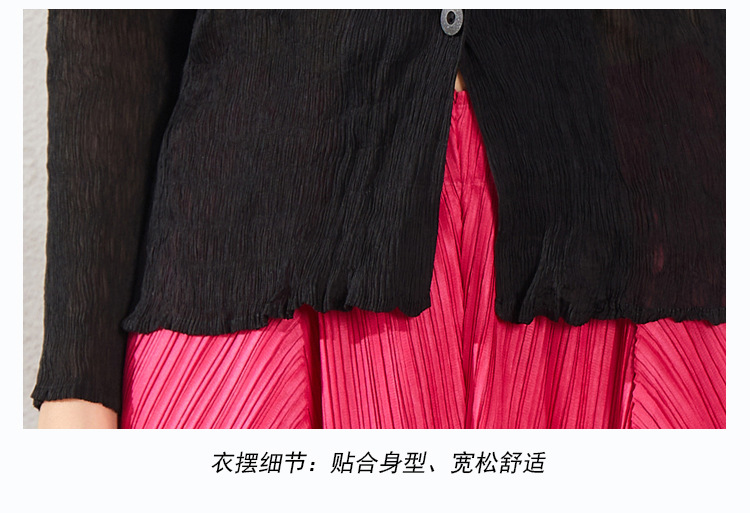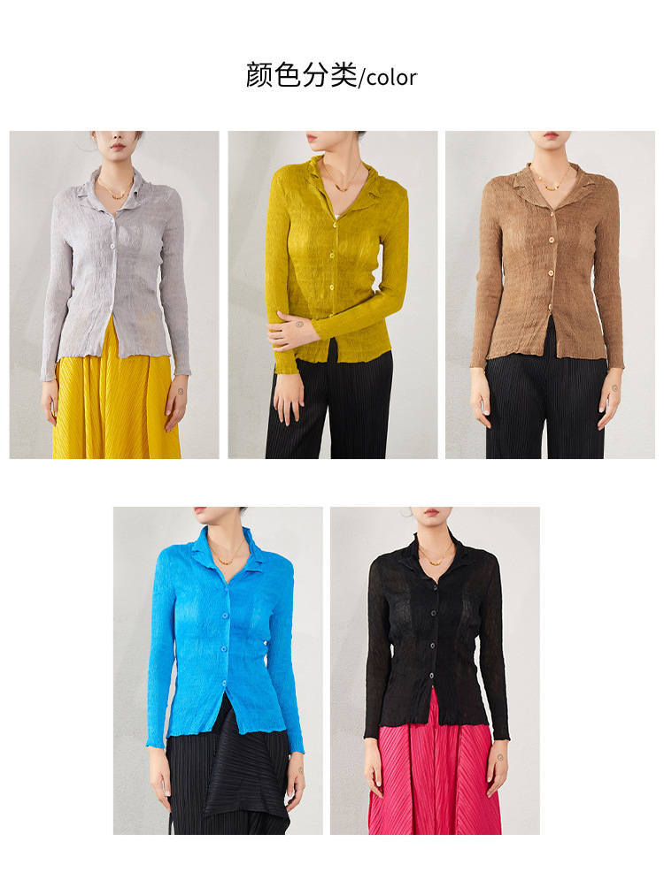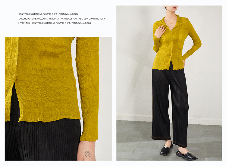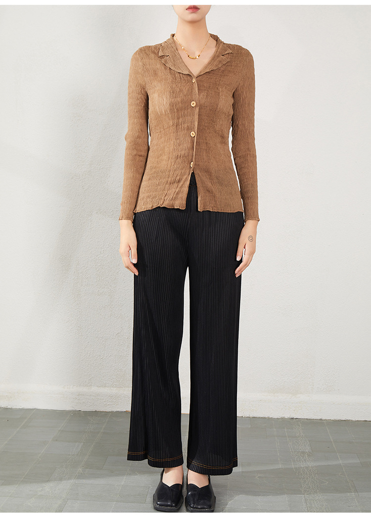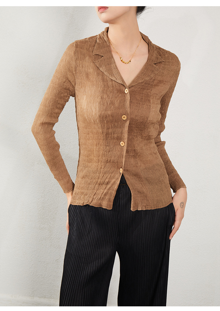 블랙 긴팔 쉬폰 셔츠 여성용 봄 가을 2026 신상 미야케 스타일 루즈핏 큰 사이즈 슬리밍 V넥 탑