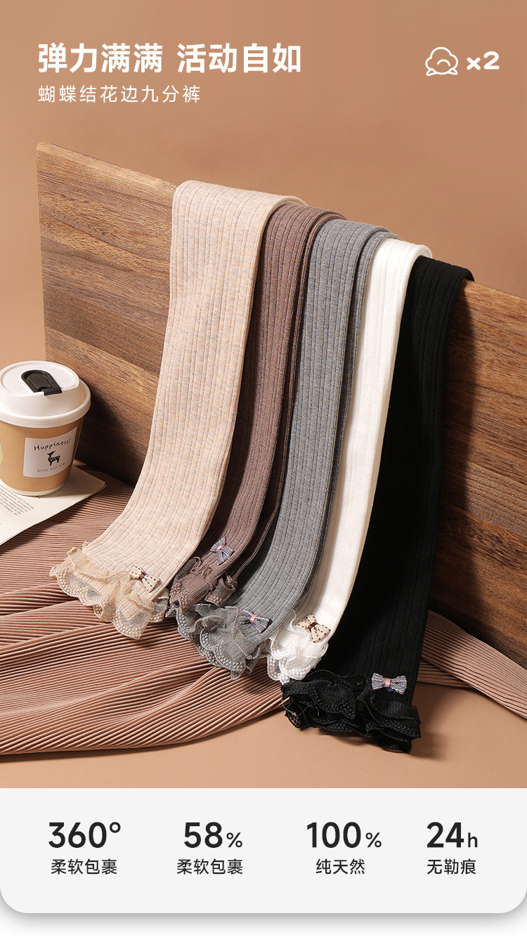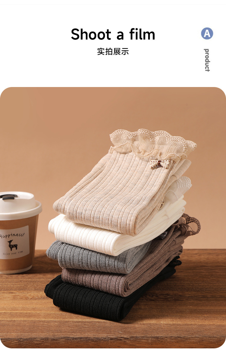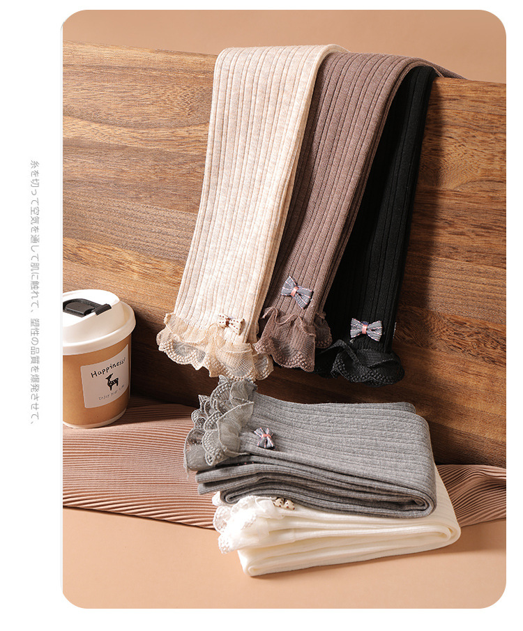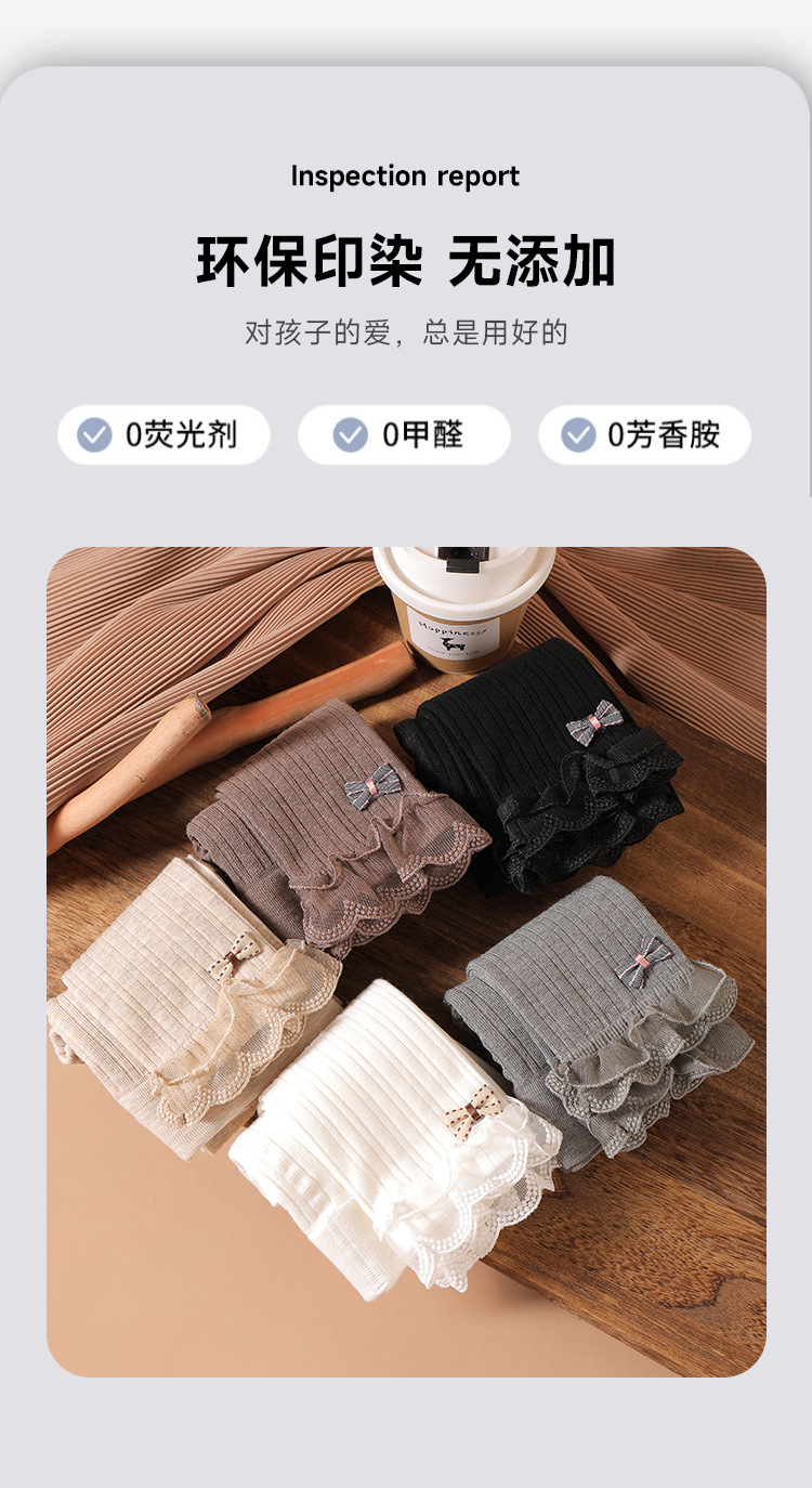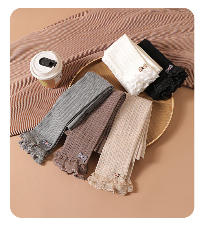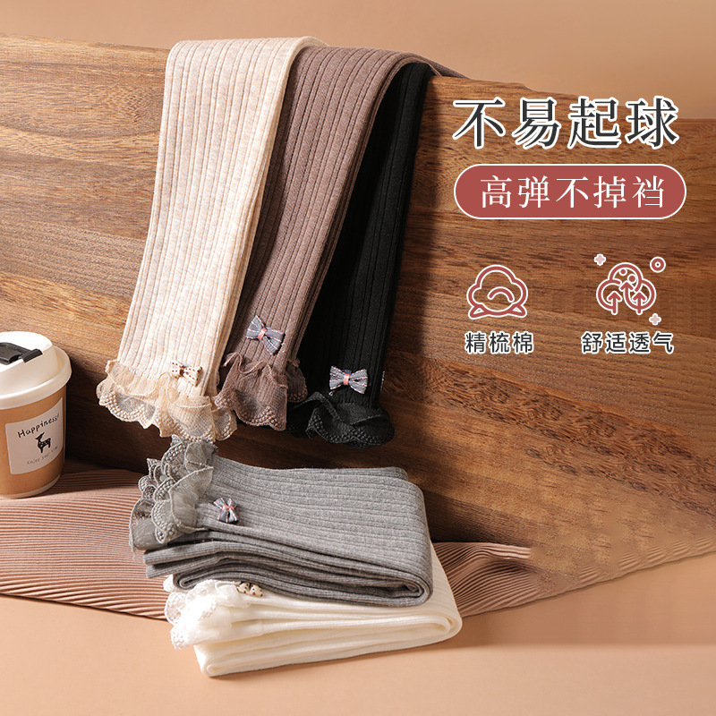 어린이용 팬티스타킹 봄가을 레깅스 여아용 레이스 9부 팬츠 아기용 오픈크로치 팬츠 보풀방지 레이스 팬티스타킹
