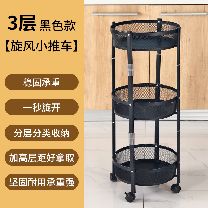 旋风厨房折叠置物架多层果蔬零食收纳小推车家用厨房可移动置物架