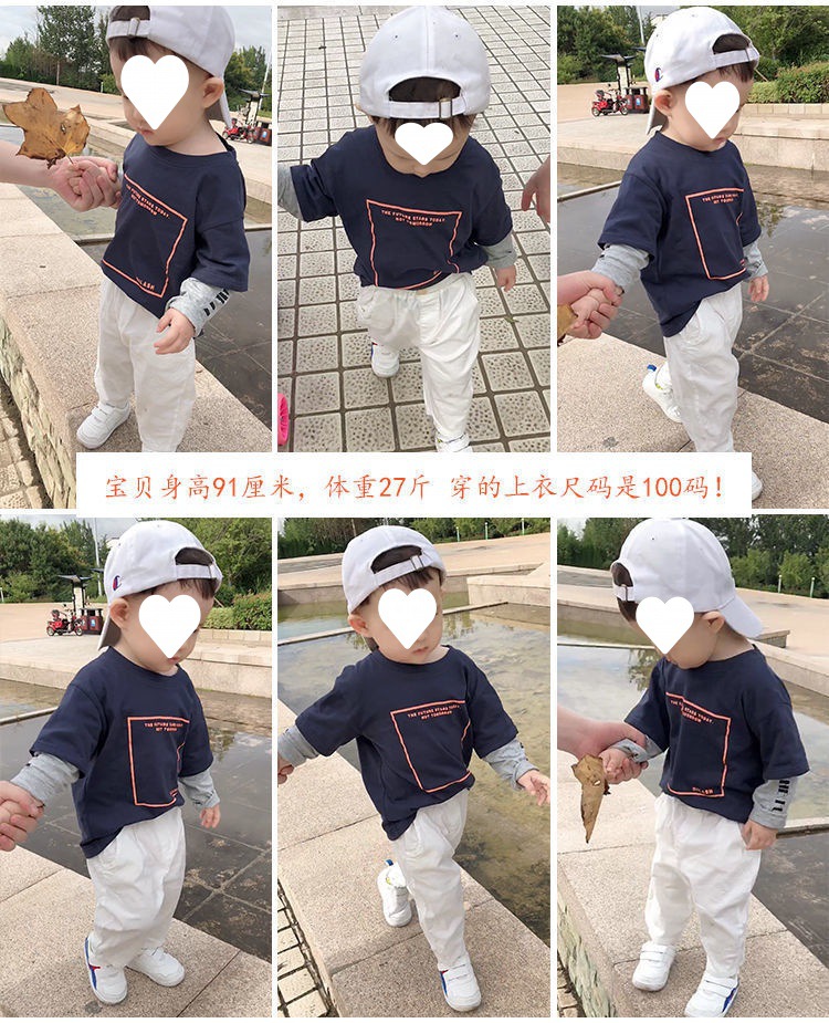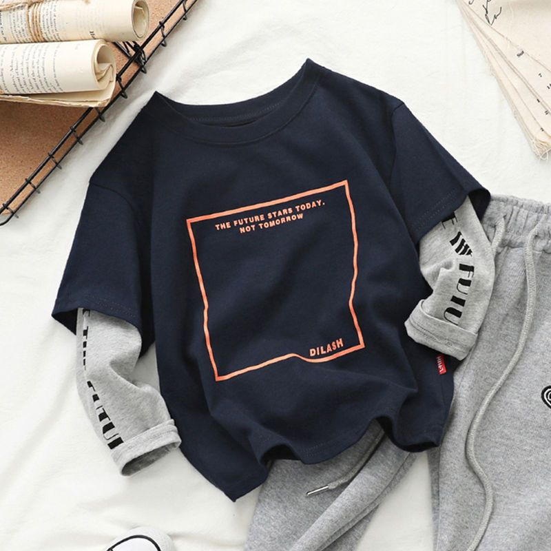 남아 가짜 투피스 티셔츠 2023 봄과 가을 새로운 어린이 긴팔 웨스턴 스타일 탑 남아 베이비 한국 스타일 트렌디 티셔츠스토어 가기