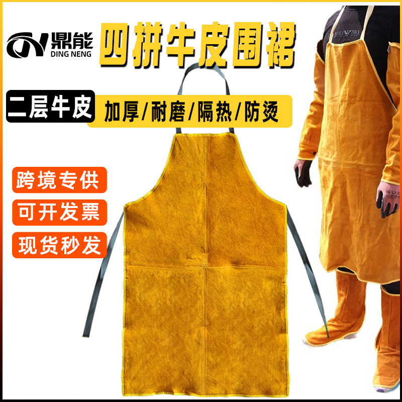 긴 소가죽 앞치마 전기 용접 앞치마 내마모성 단열 내화 꽃 방지 내열성 용접기 보호 앞치마