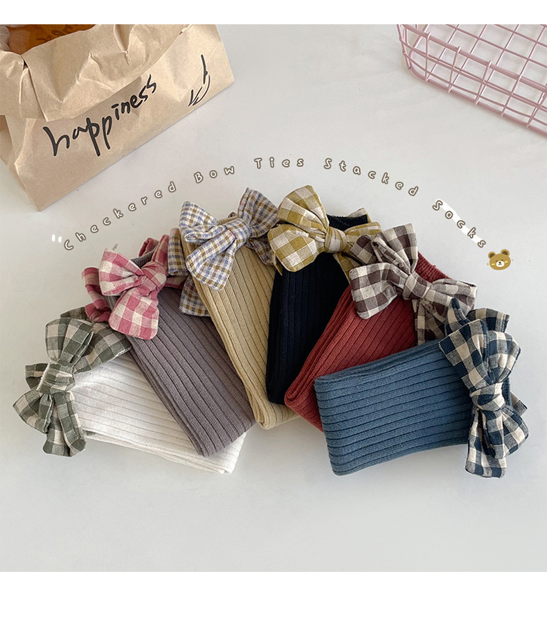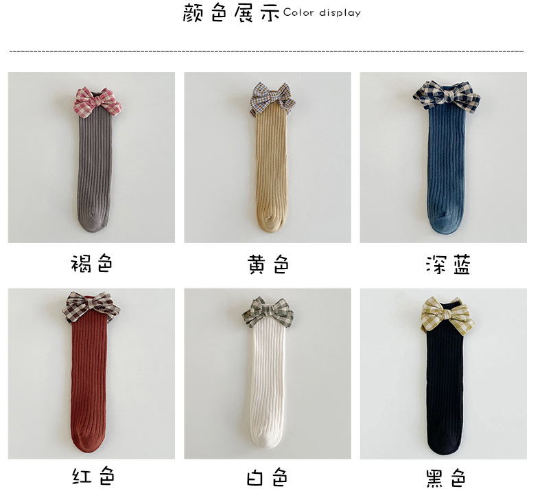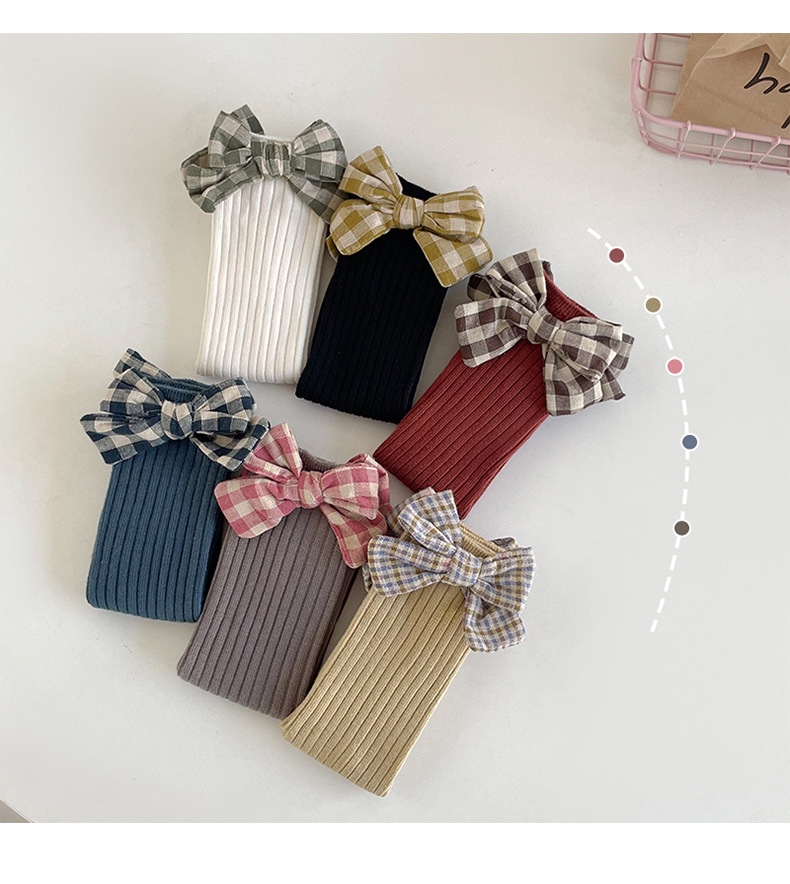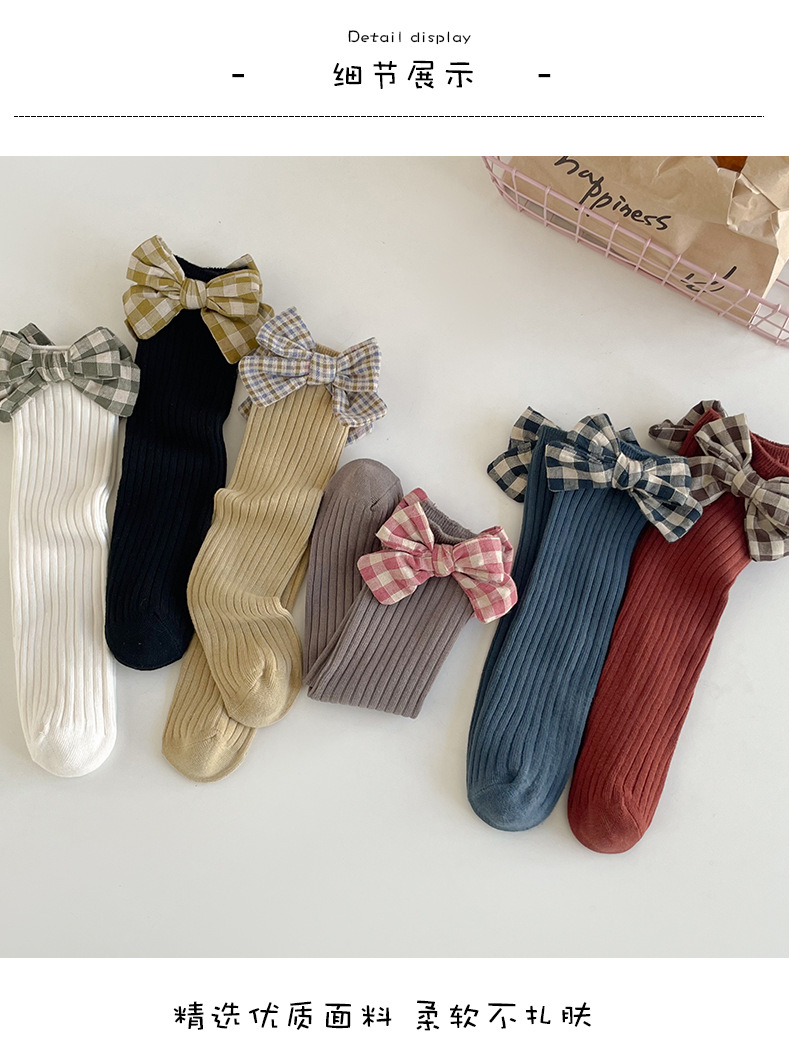 가을과 겨울 새로운 튜브 양말 격자 무늬 복고풍 송아지 양말 소녀 한국면 양말 단색 파일 양말 어린이 양말 도매