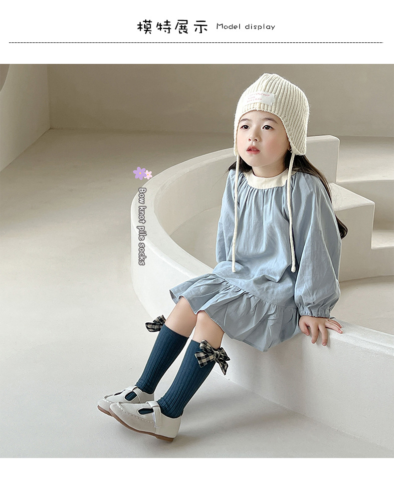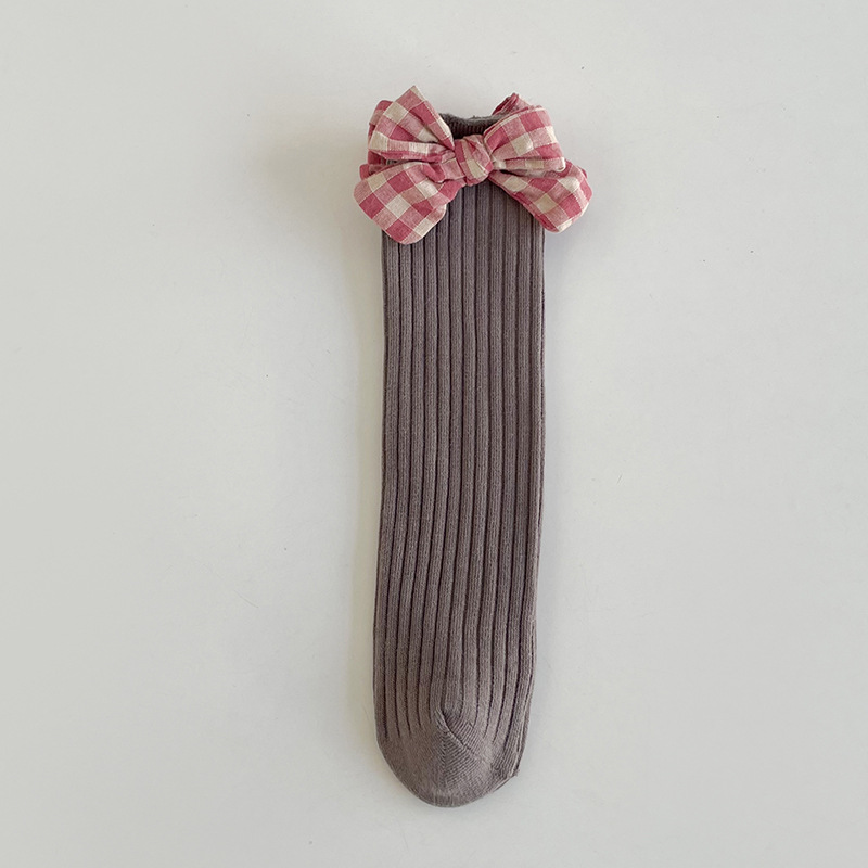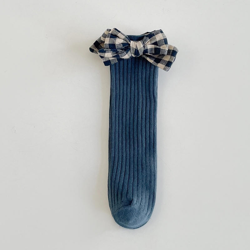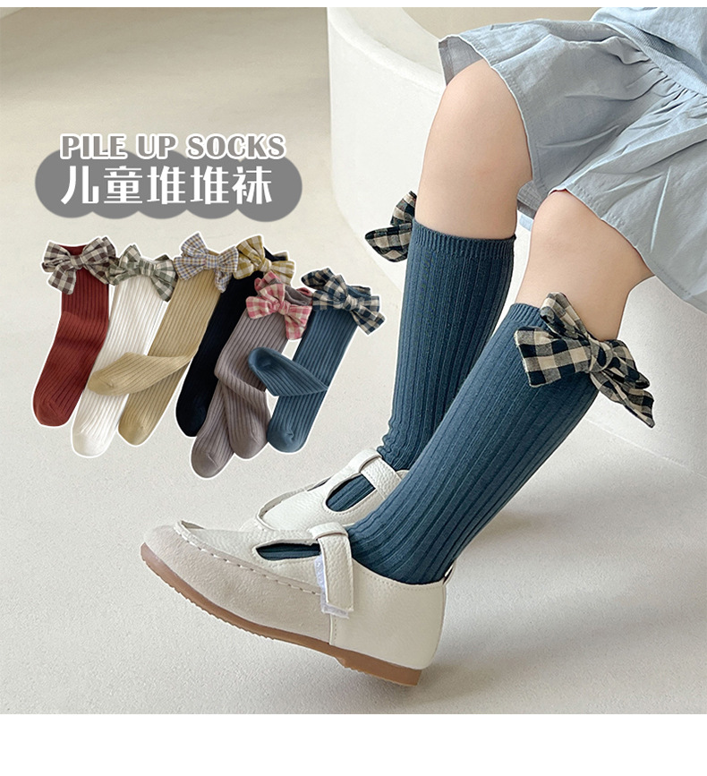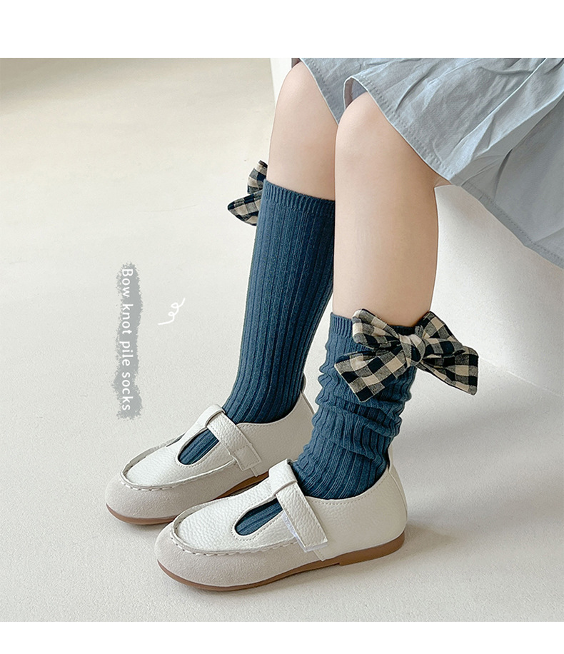 가을과 겨울 새로운 튜브 양말 격자 무늬 복고풍 송아지 양말 소녀 한국면 양말 단색 파일 양말 어린이 양말 도매