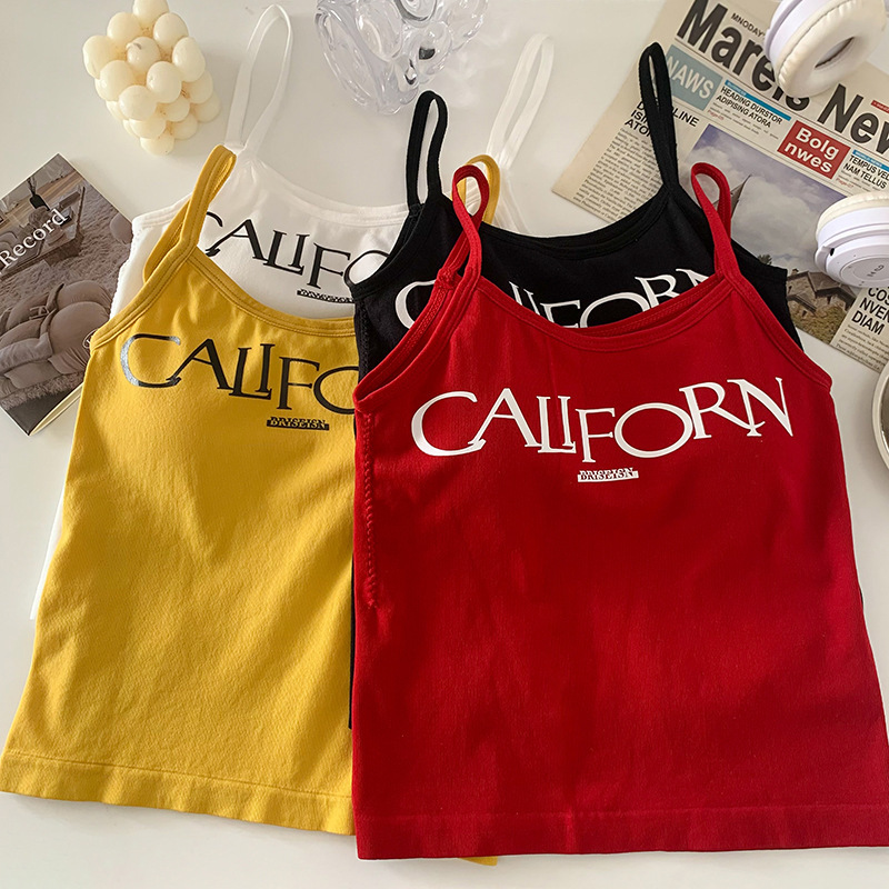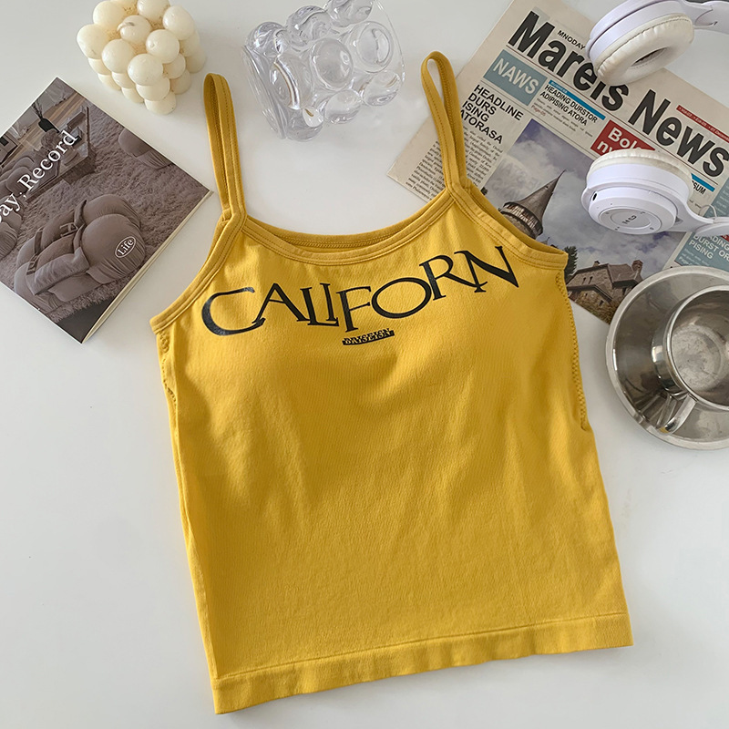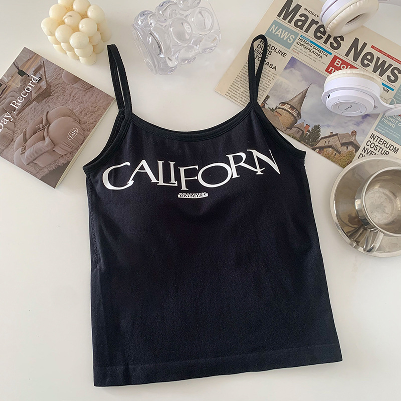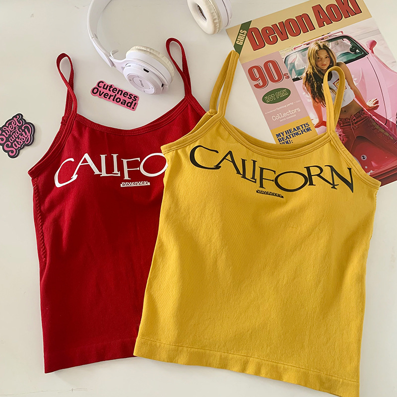 빈티지 프린트 스파이스 걸 작은 캐미솔 조끼 아메리칸 스타일 슬림 핏 내부 착용 겉옷 조끼 여성용 여름 새로운 스타일 소녀를위한 아름다운 등스토어 가기