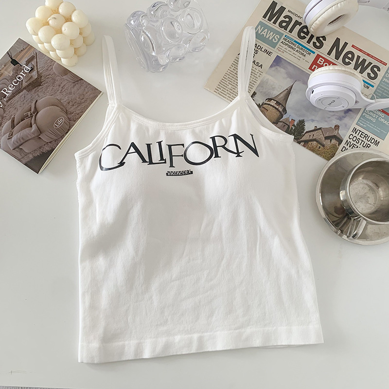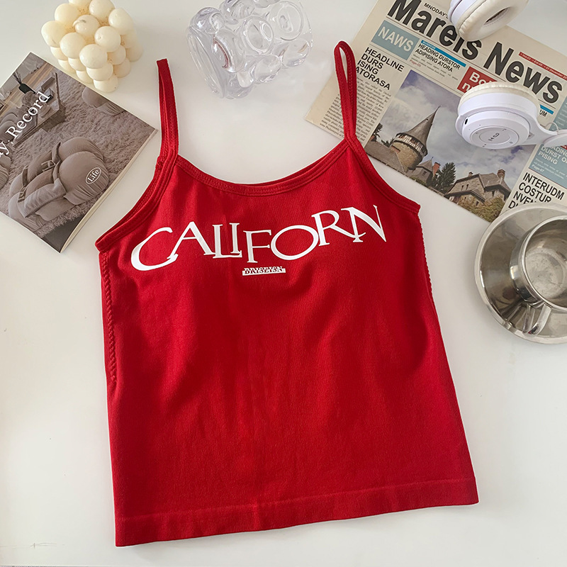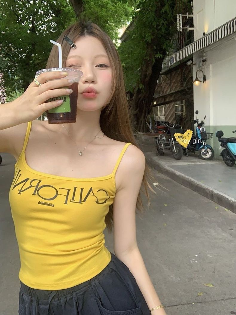 빈티지 프린트 스파이스 걸 작은 캐미솔 조끼 아메리칸 스타일 슬림 핏 내부 착용 겉옷 조끼 여성용 여름 새로운 스타일 소녀를위한 아름다운 등