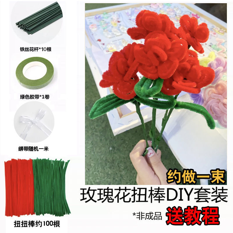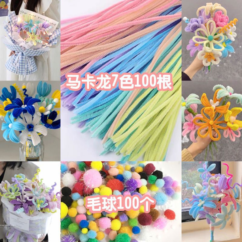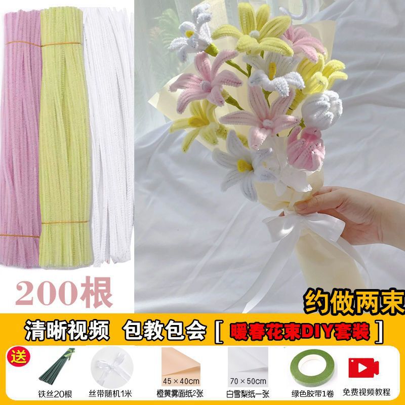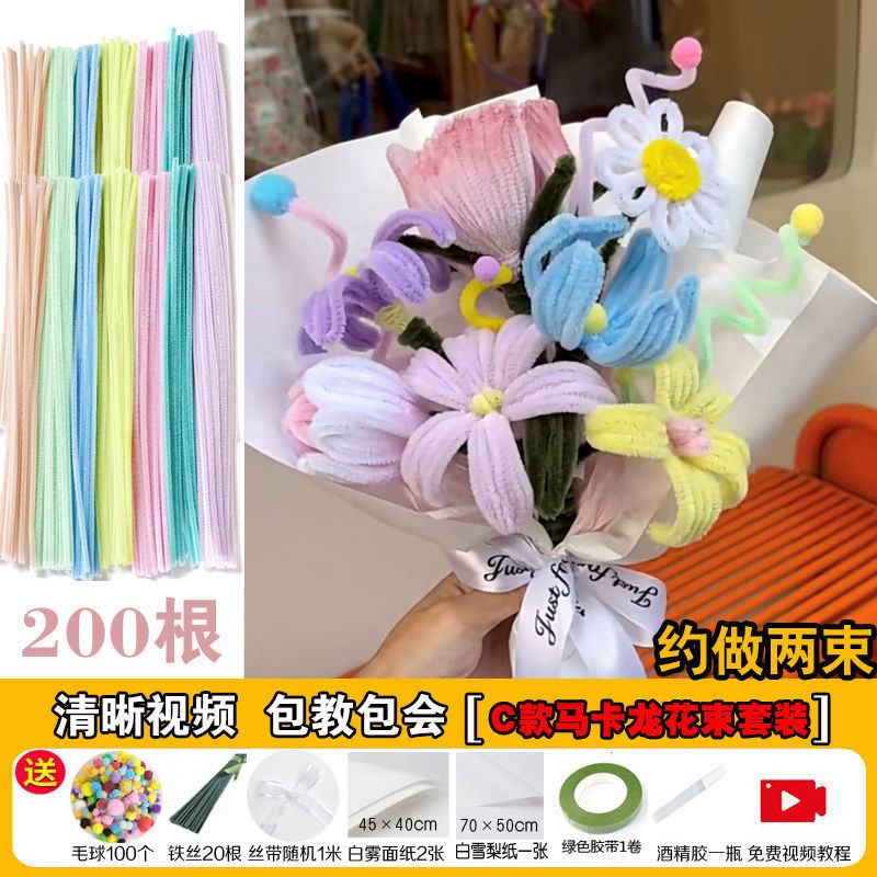 꽃다발 DIY 수제 트위스트 로드 색상 소재 암호화 머리 뿌리 양모 봉제 인형 선물 도매 제조 업체스토어 가기