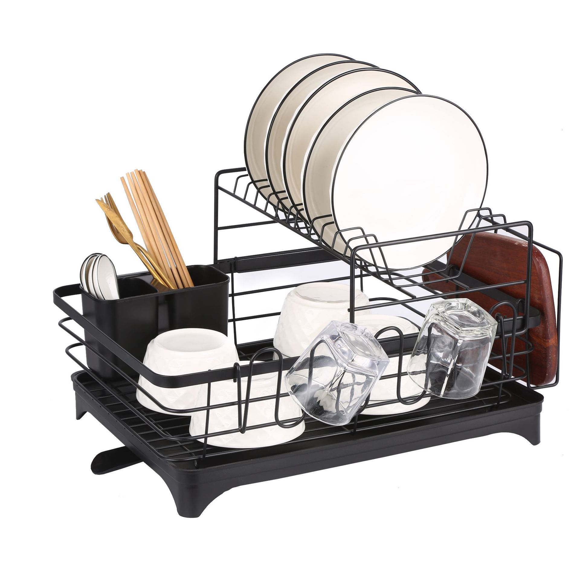 • 업그레이드된 360 ° 워터 가이드 트레이 더블 레이어 + 도마 랙 + 컵 홀더