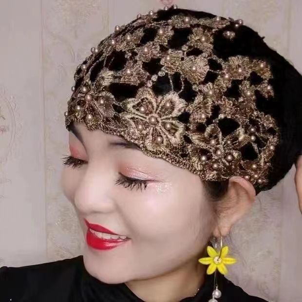 2023 여름 무스 모자 여성용 가방 헤드 모자 캐주얼 페르시 레이스 모자 노인 모자 어머니 모자 헤어 커버 풀오버