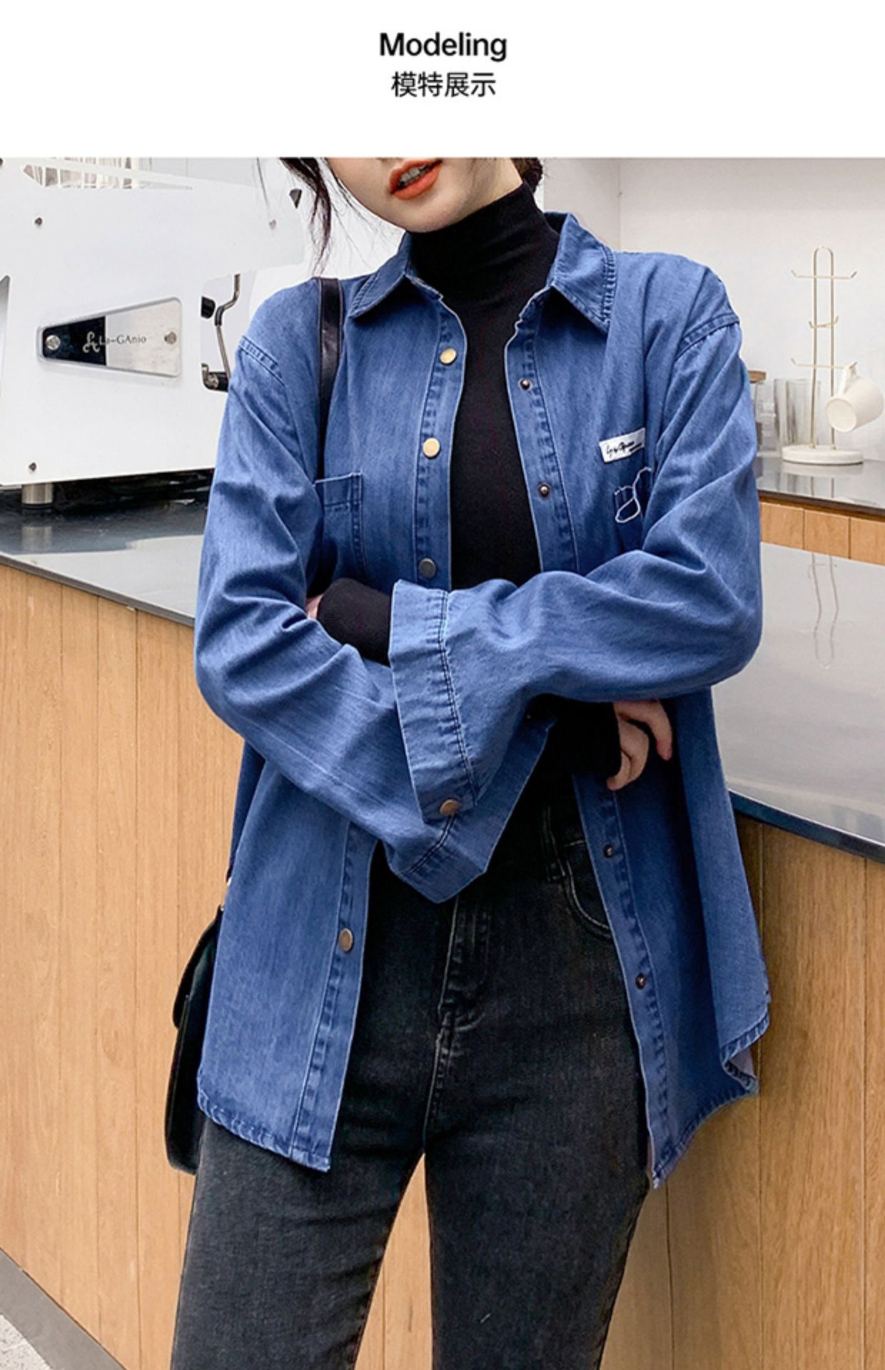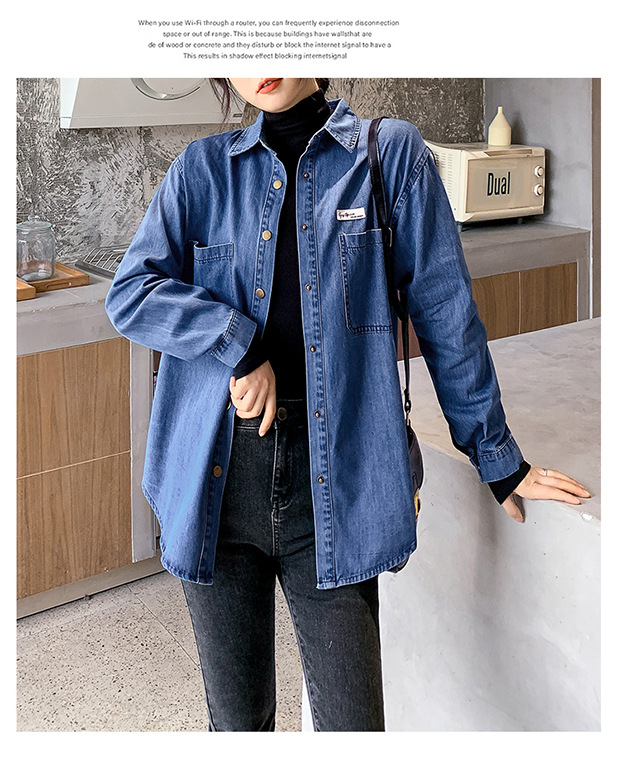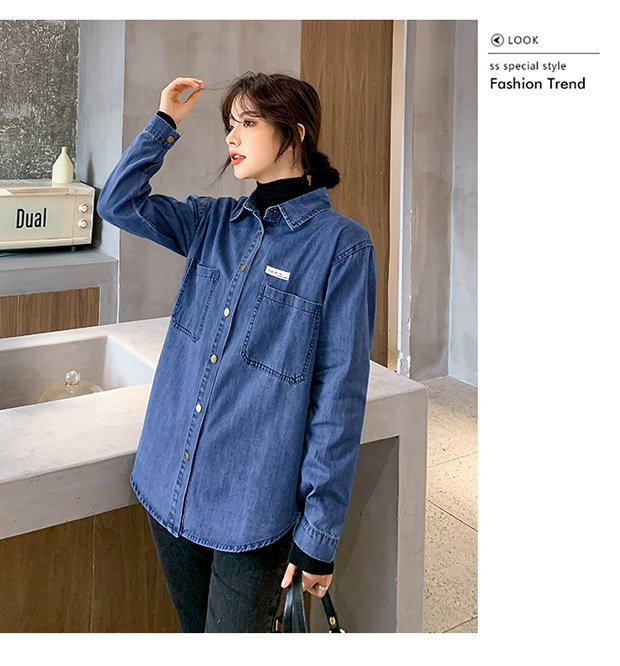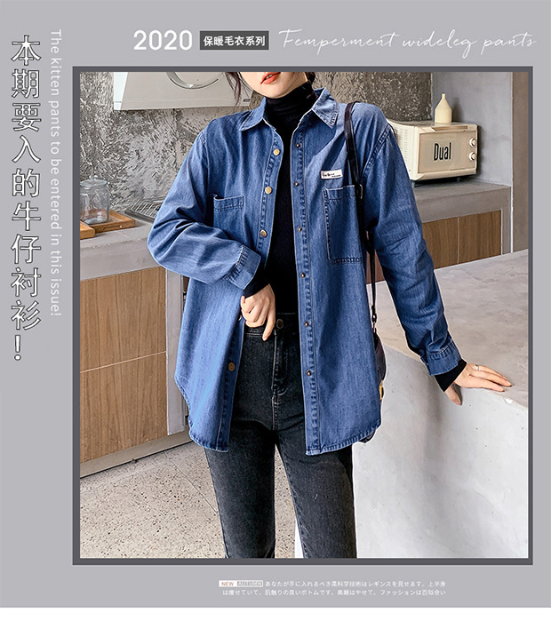 느슨한 캐주얼 BF 바람 긴 소매 데님 셔츠 여자의 더블 포켓 화이트 라벨 긴 셔츠 코트 여자의 세대스토어 가기