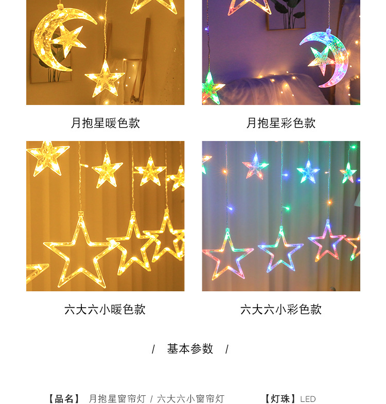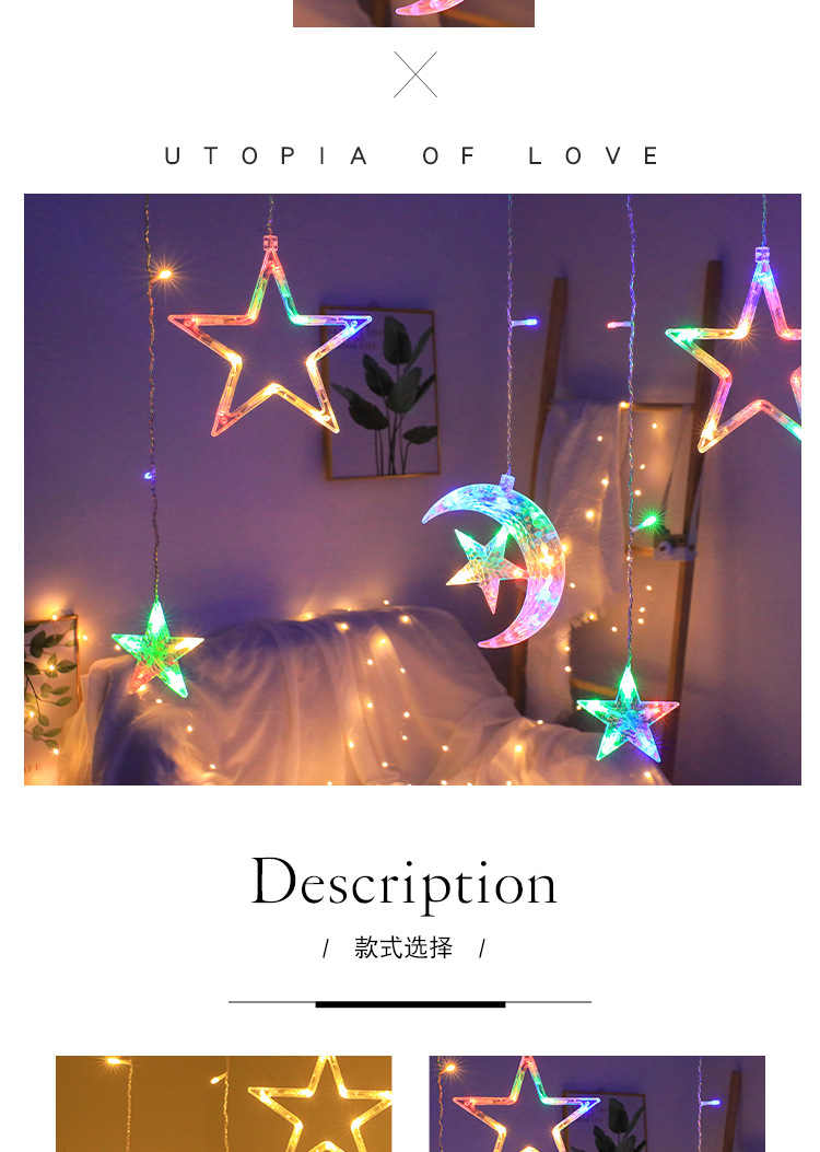 달과 별 컬러 램프 커튼 램프 LED 스타 소녀의 심장 침실 장식 방 발코니 베이 창 레이아웃
