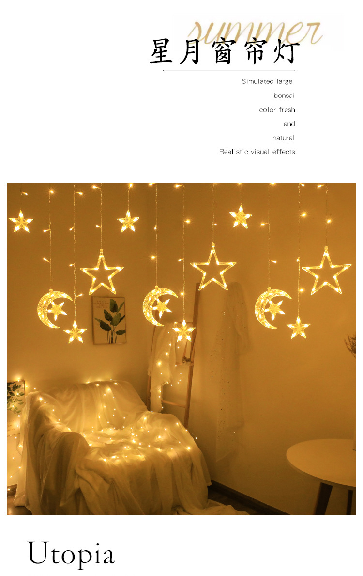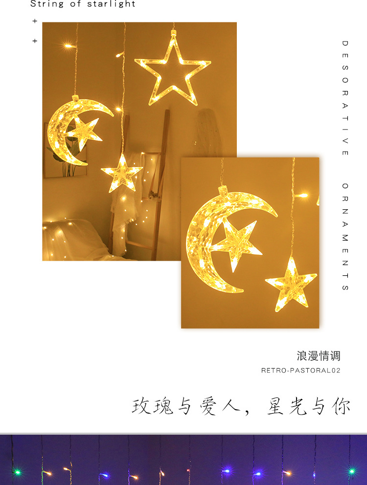달과 별 컬러 램프 커튼 램프 LED 스타 소녀의 심장 침실 장식 방 발코니 베이 창 레이아웃스토어 가기