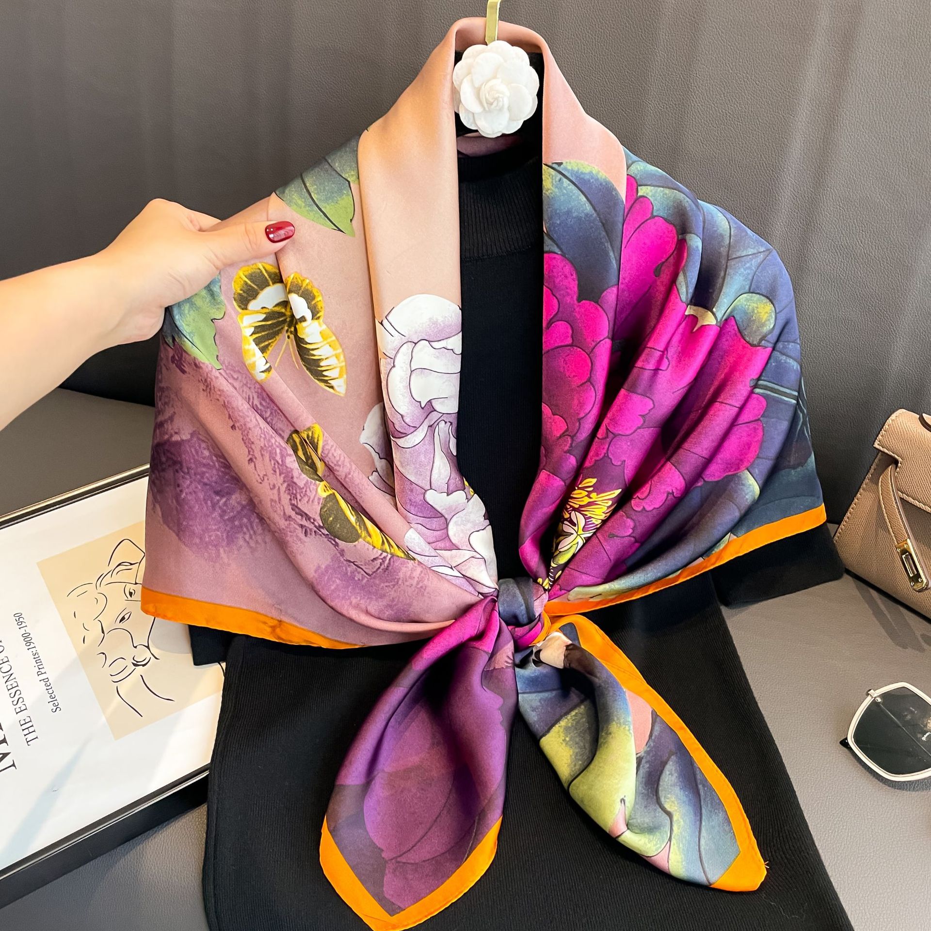 New Li 브로케이드 새틴 대형 스퀘어 숙녀 선 스크린 숄 110*110cm 비치 타월 기질 터번스토어 가기