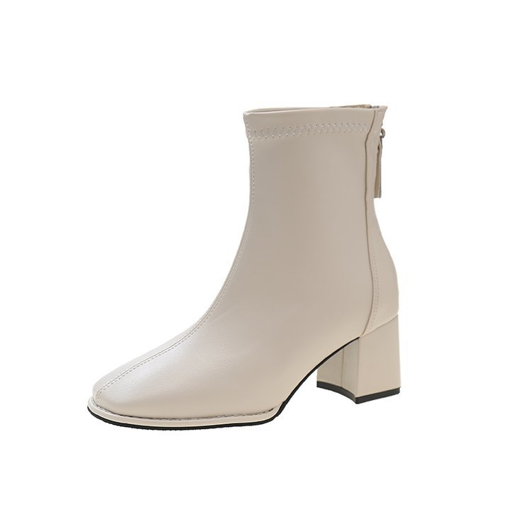 프랑스 스타일 청키 스몰 쇼트 부츠 여성용 2023 가을 신상품 마틴 유행 부드러운 가죽 스퀘어 토 모든 경기 얇은 부츠 스트레치 부츠