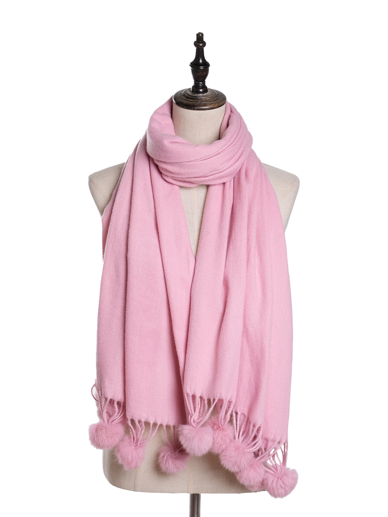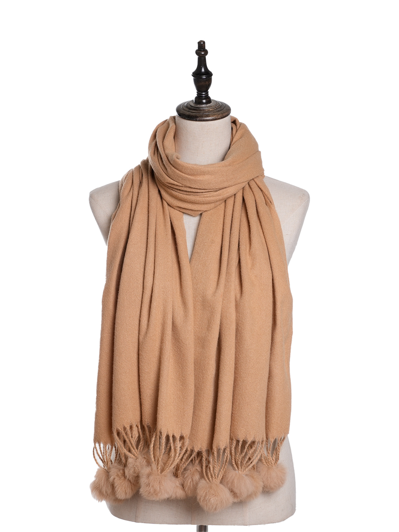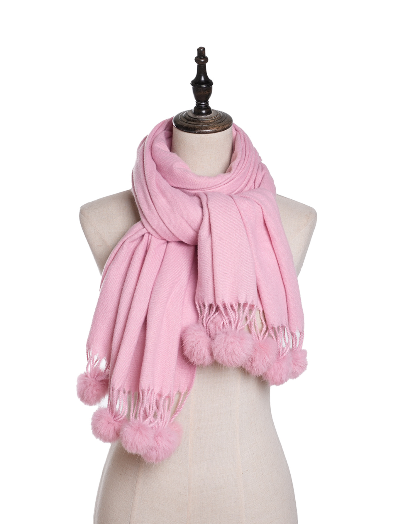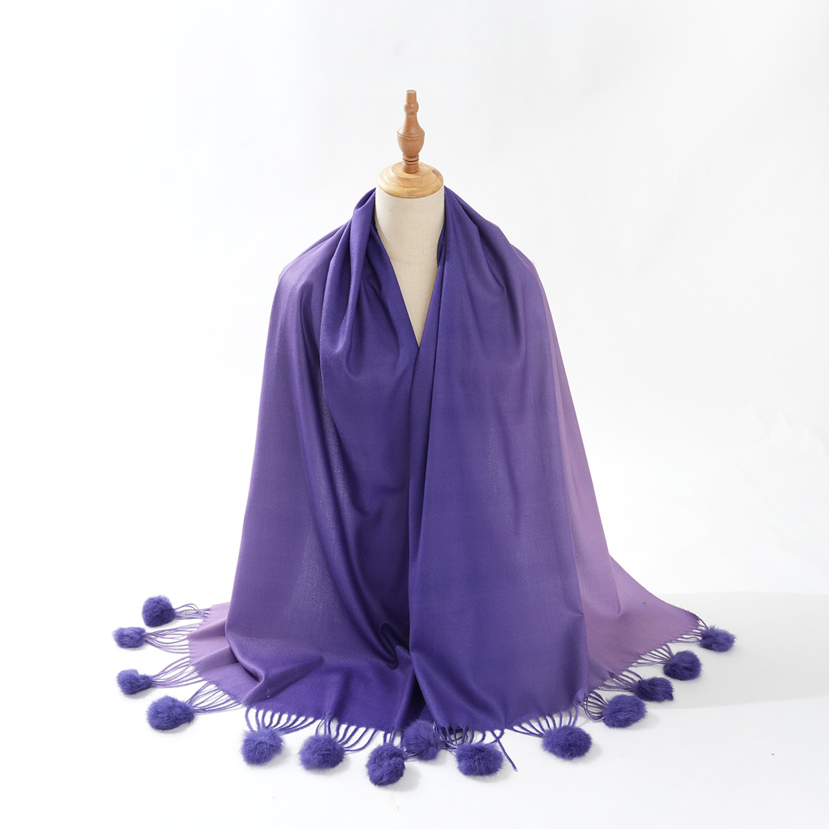 유럽과 미국의 뜨거운 판매 새로운 단색 모조 캐시미어 단색 수염 모피 공 패션 스카프 여성의 모든 경기 따뜻한 스카프