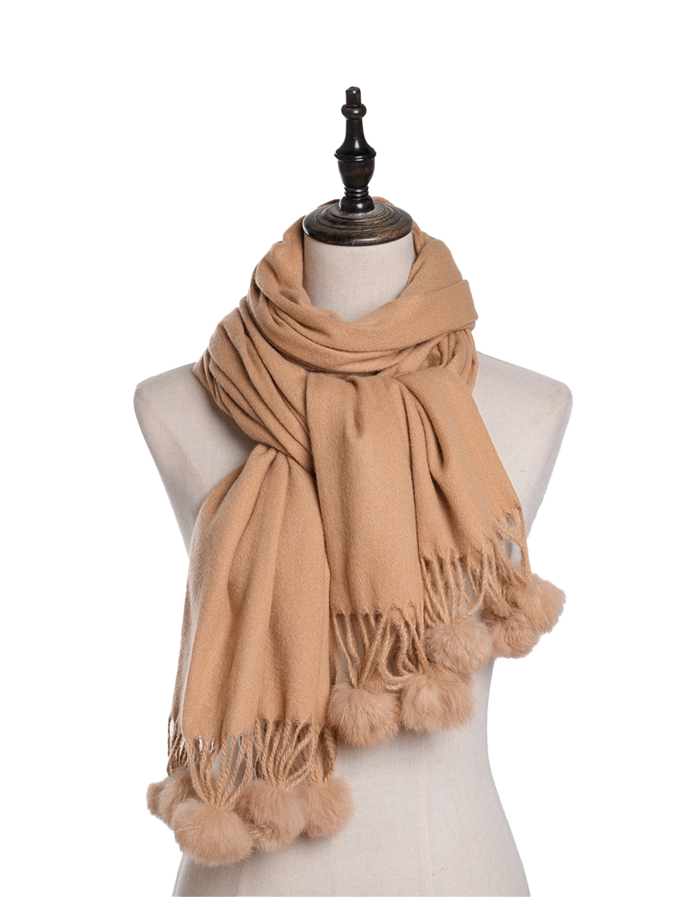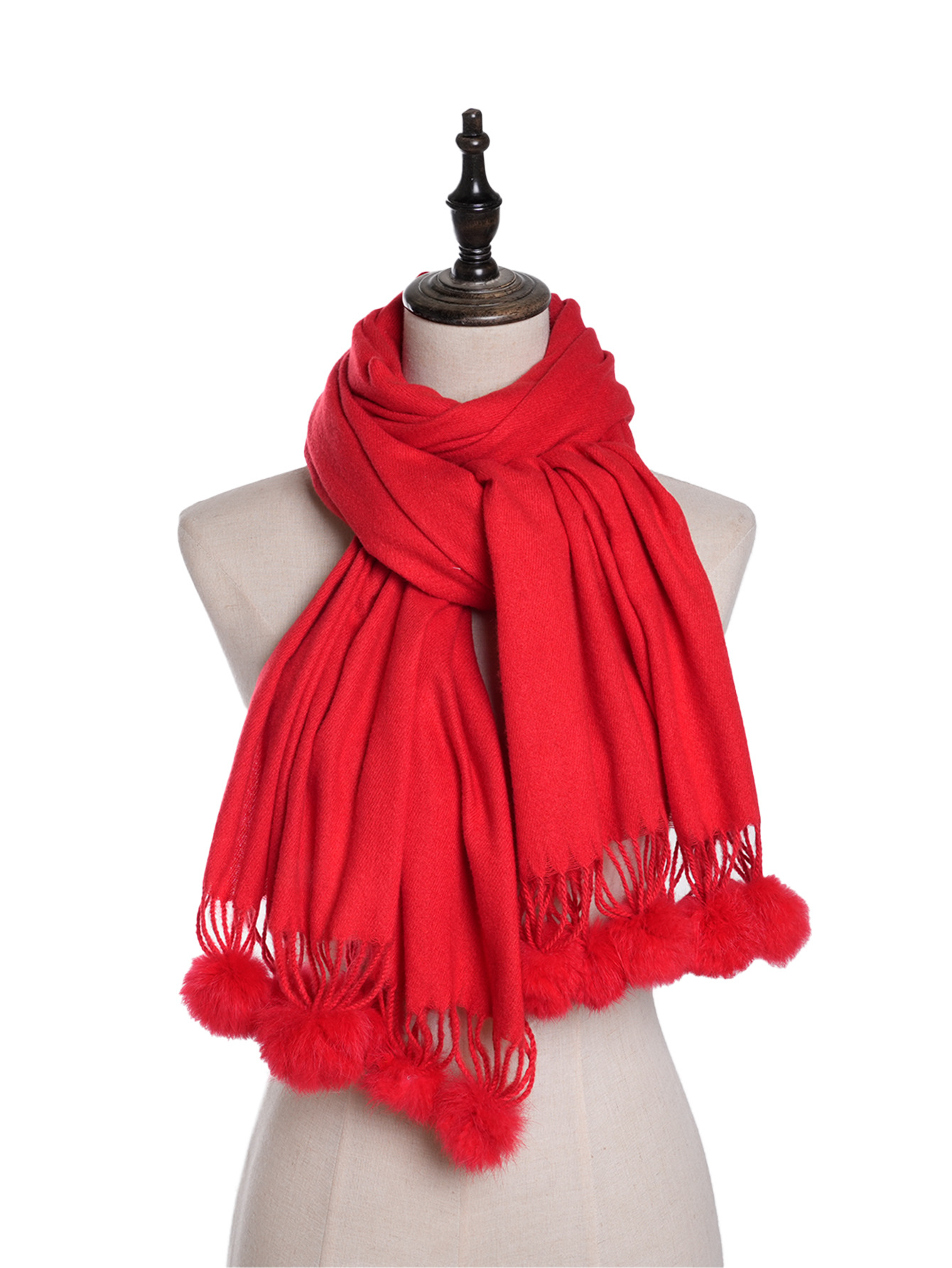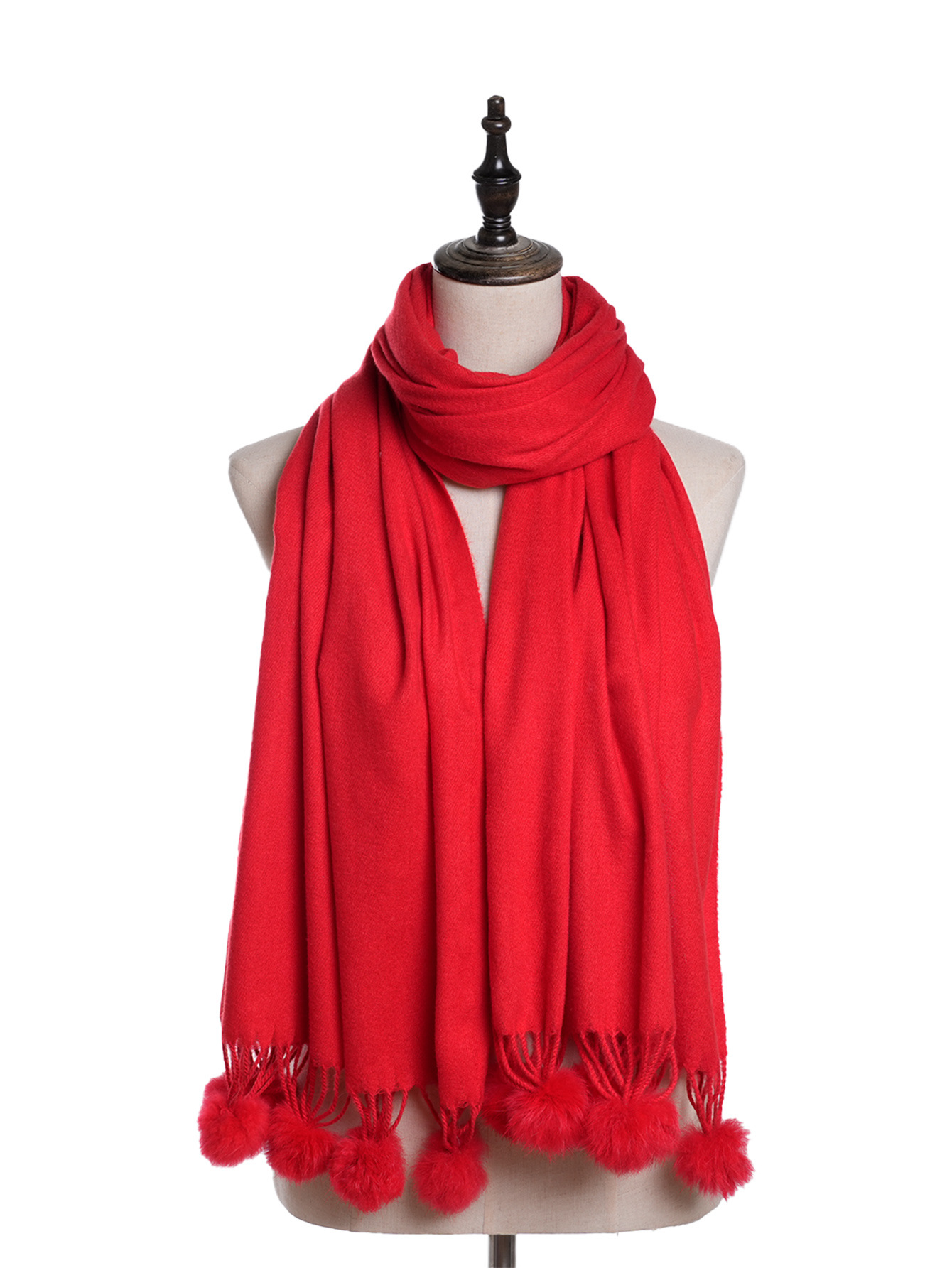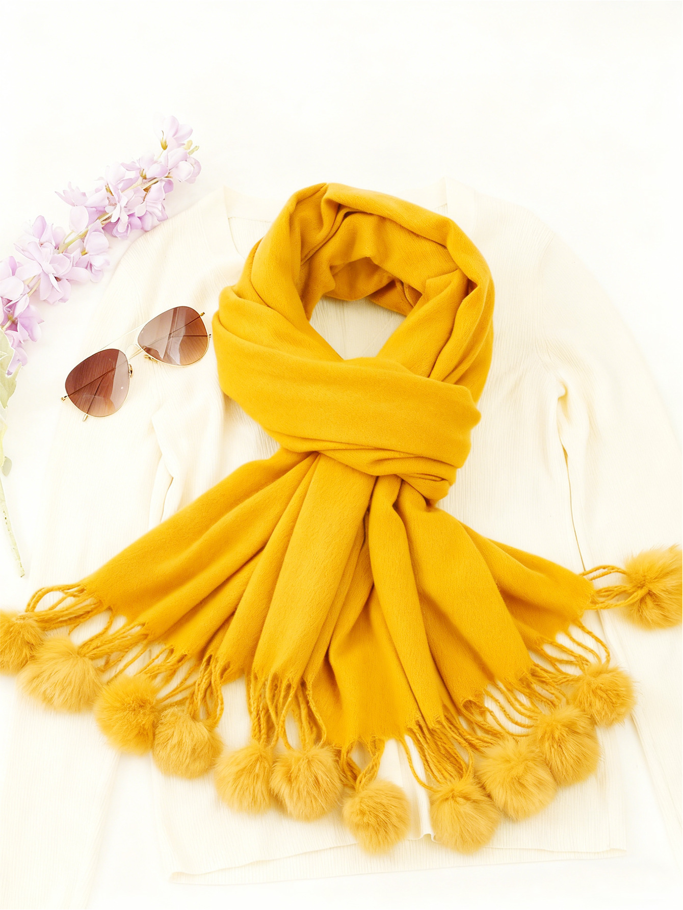 유럽과 미국의 뜨거운 판매 새로운 단색 모조 캐시미어 단색 수염 모피 공 패션 스카프 여성의 모든 경기 따뜻한 스카프