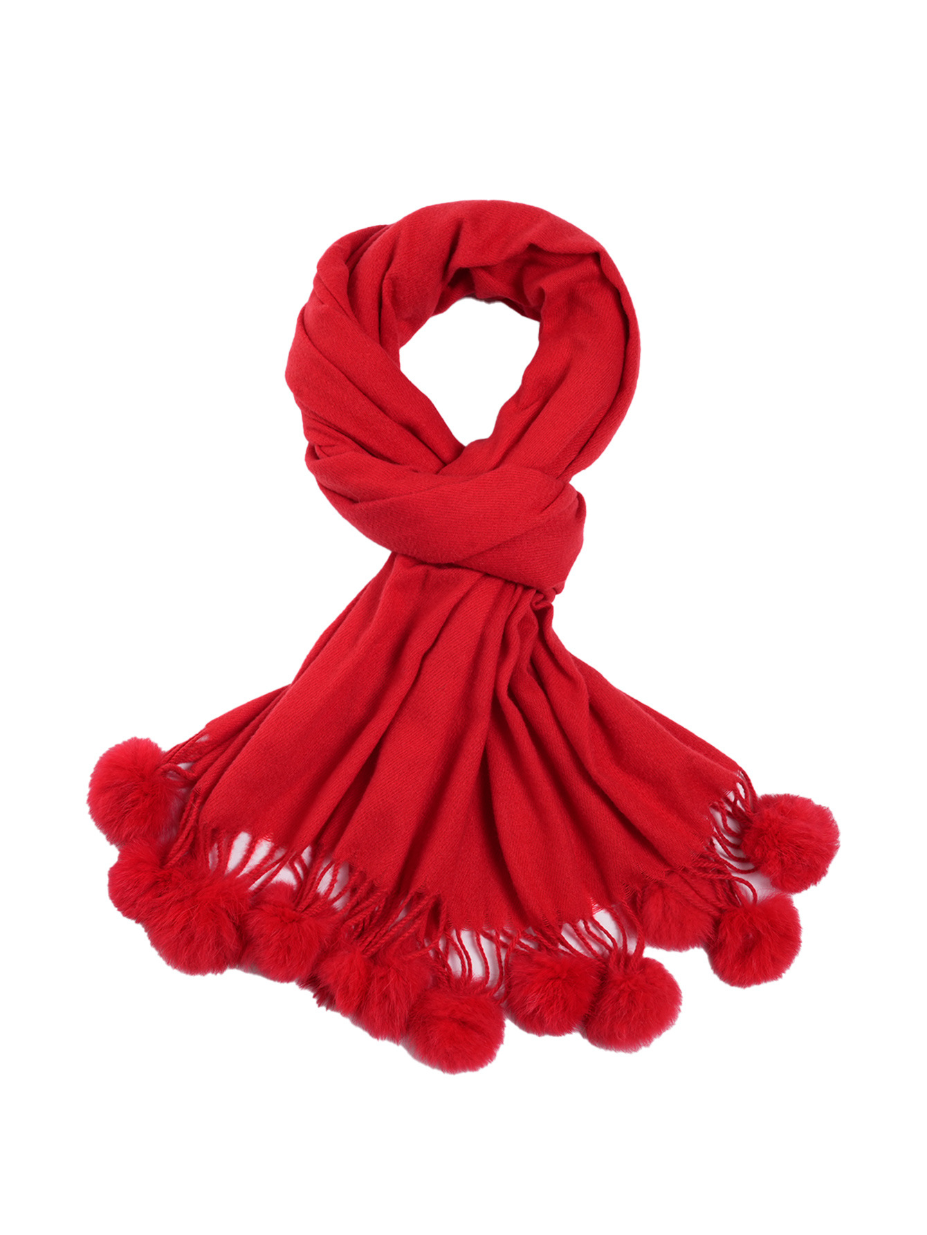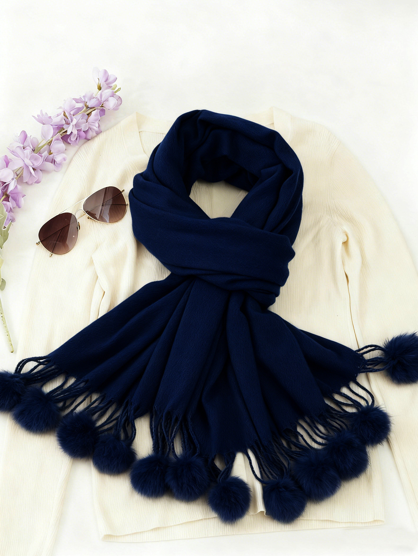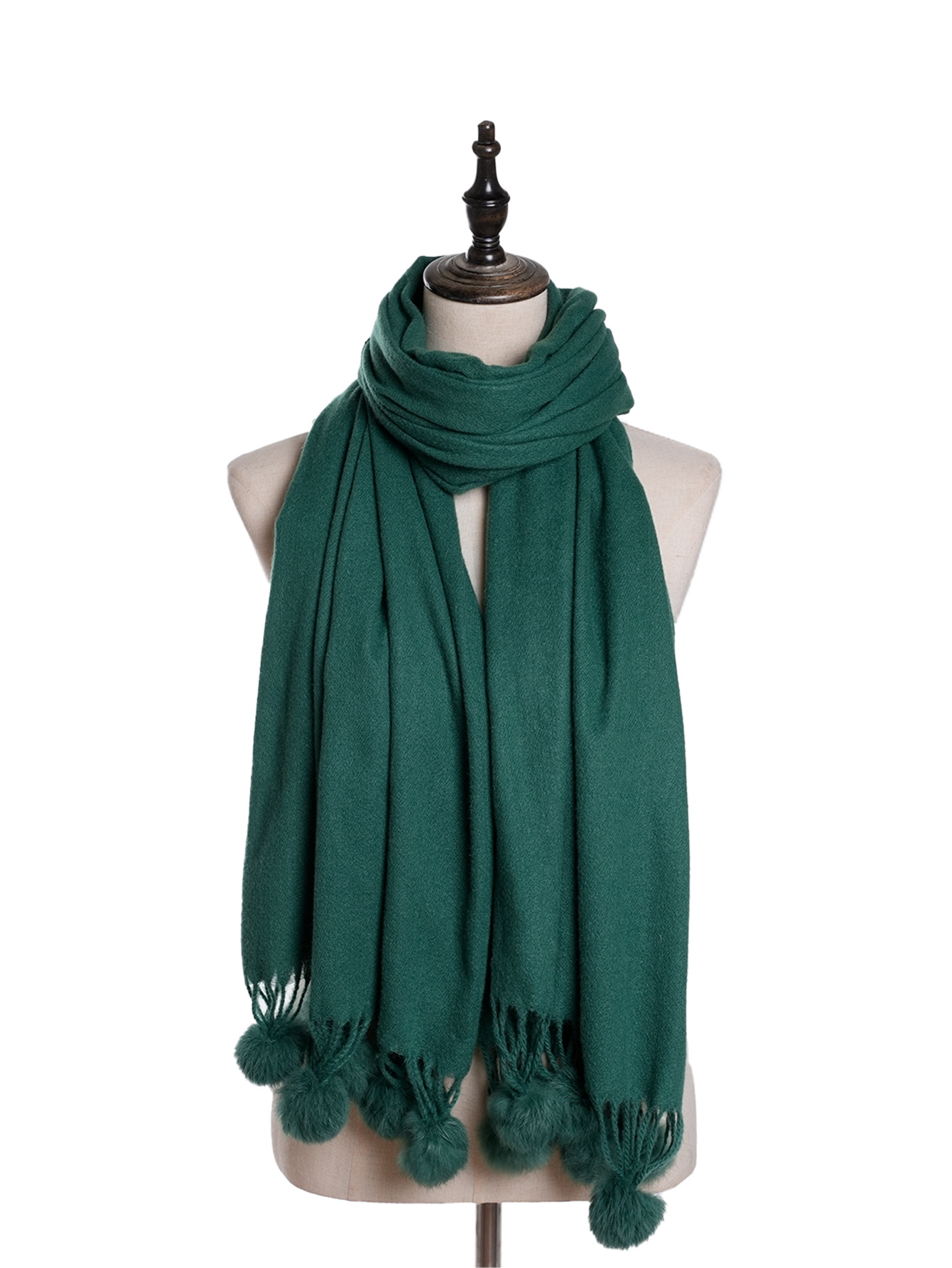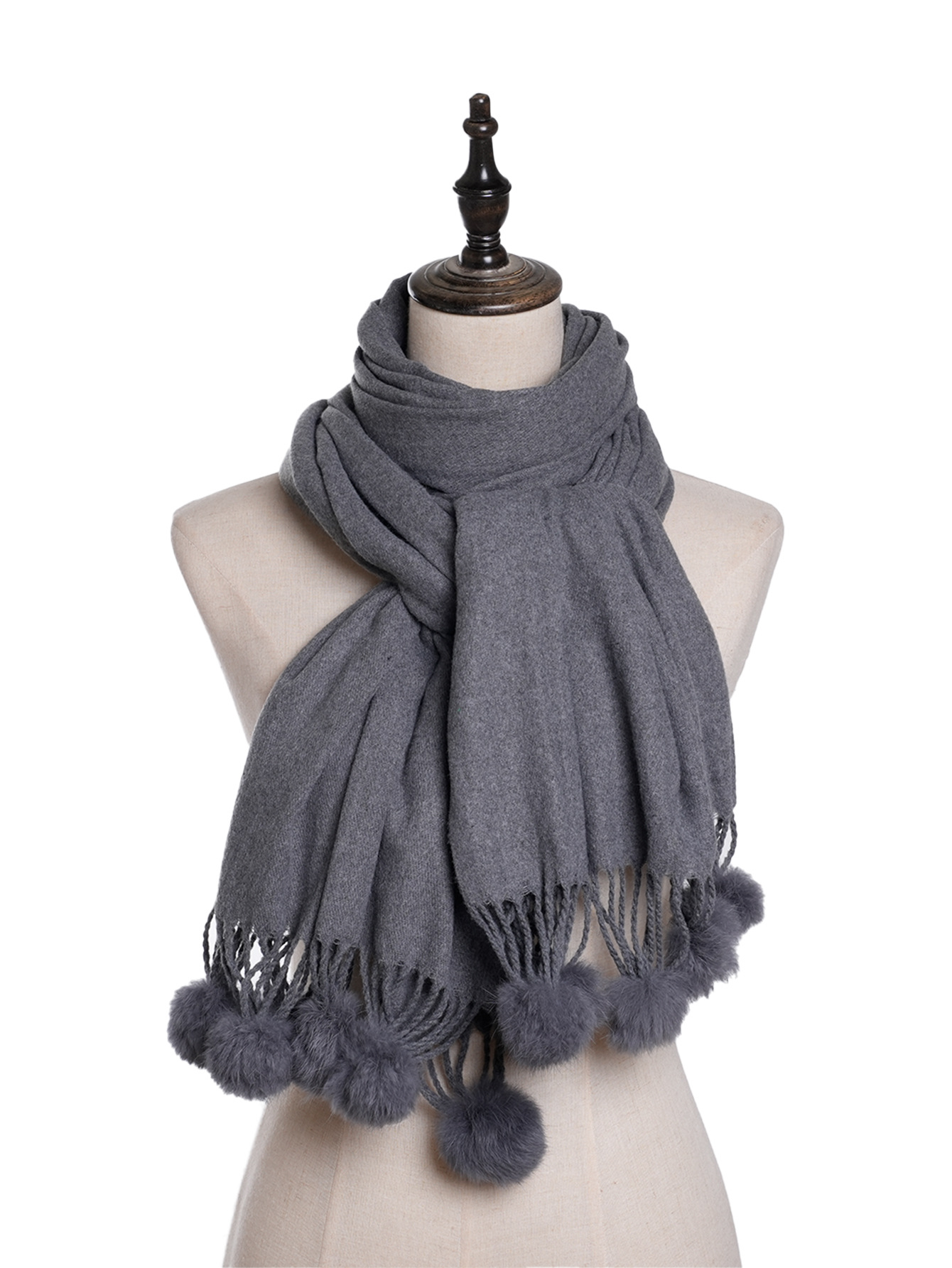 유럽과 미국의 뜨거운 판매 새로운 단색 모조 캐시미어 단색 수염 모피 공 패션 스카프 여성의 모든 경기 따뜻한 스카프