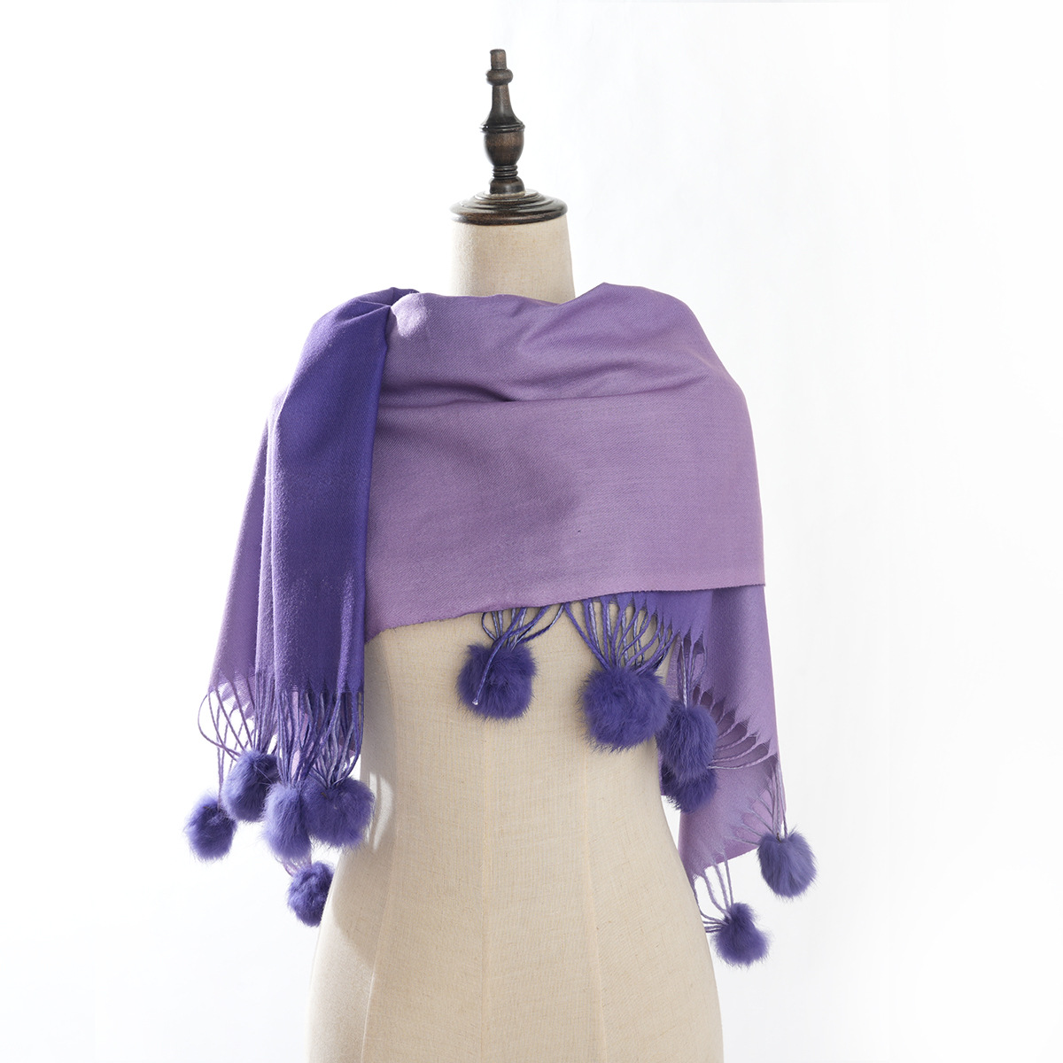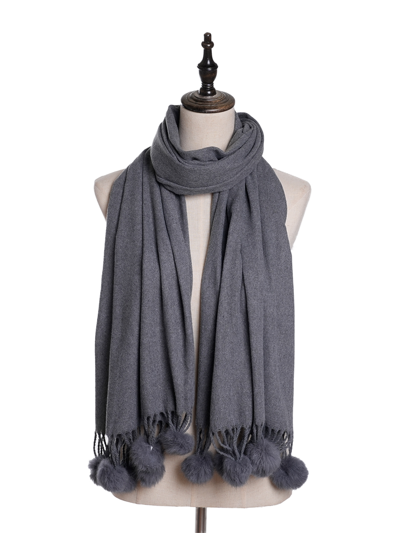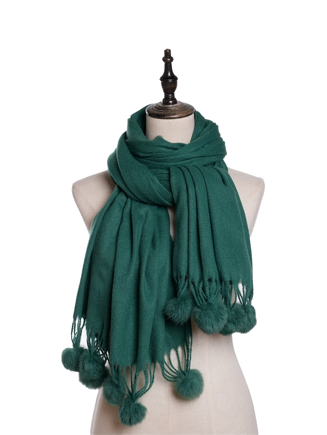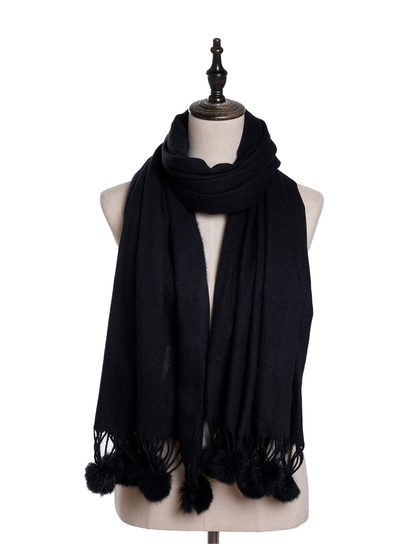유럽과 미국의 뜨거운 판매 새로운 단색 모조 캐시미어 단색 수염 모피 공 패션 스카프 여성의 모든 경기 따뜻한 스카프