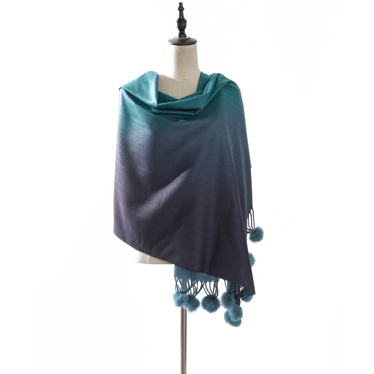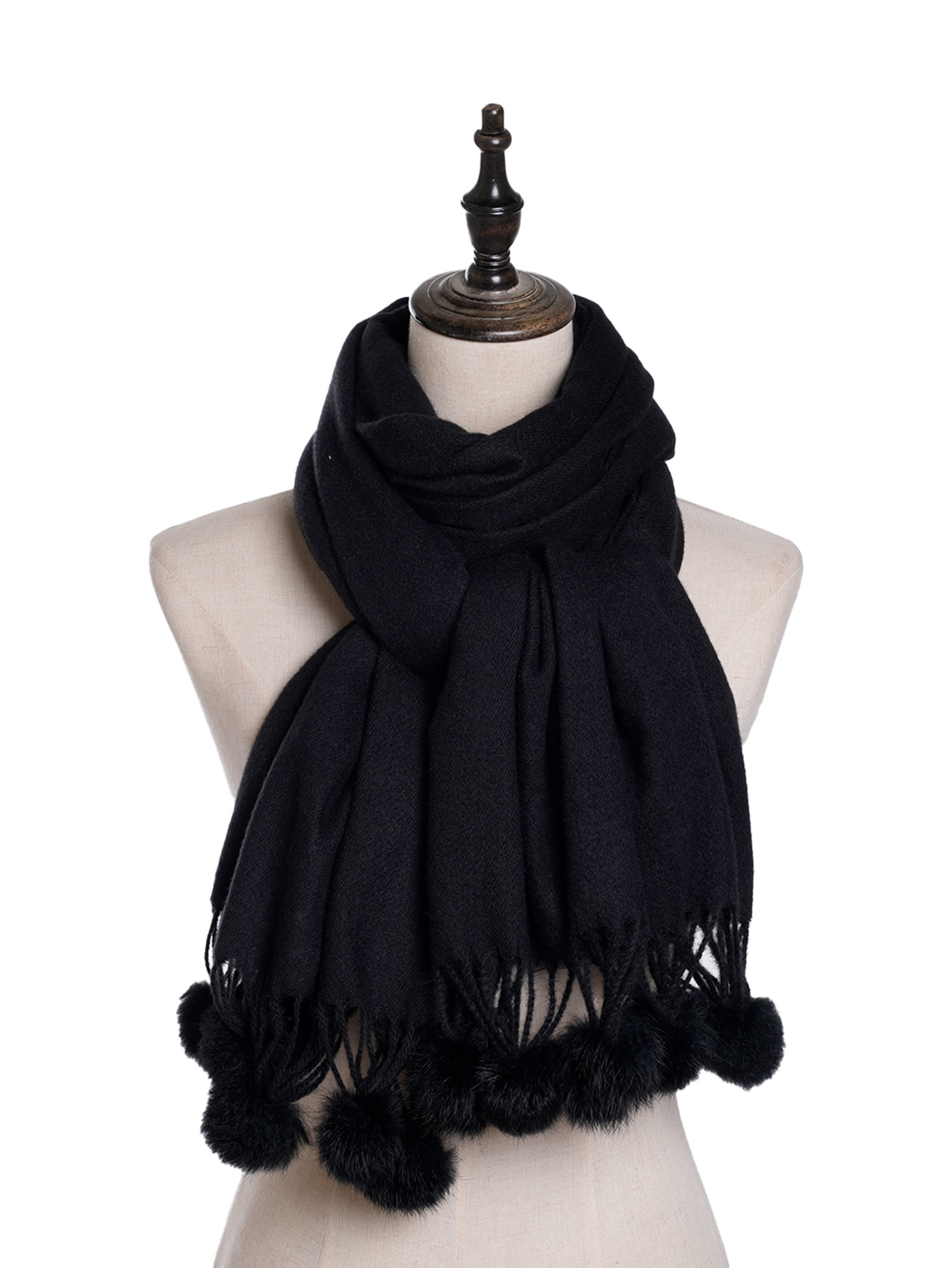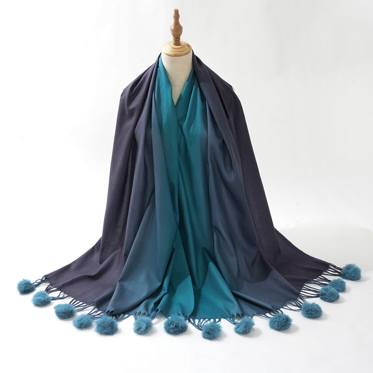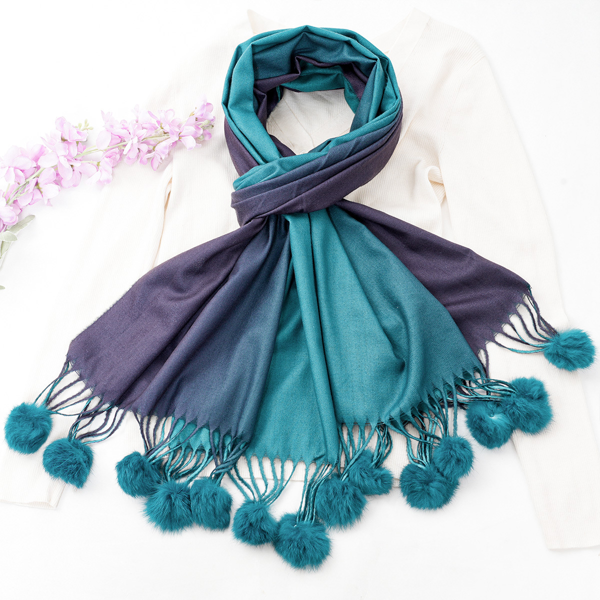유럽과 미국의 뜨거운 판매 새로운 단색 모조 캐시미어 단색 수염 모피 공 패션 스카프 여성의 모든 경기 따뜻한 스카프스토어 가기