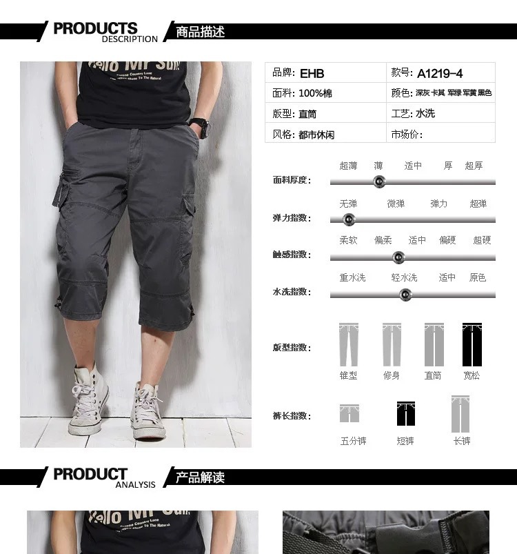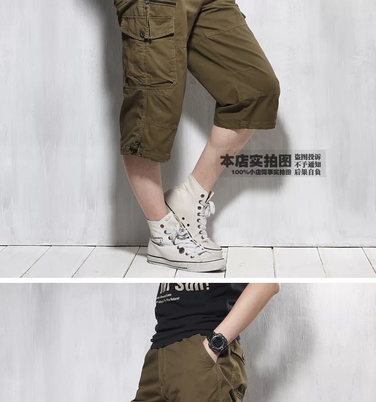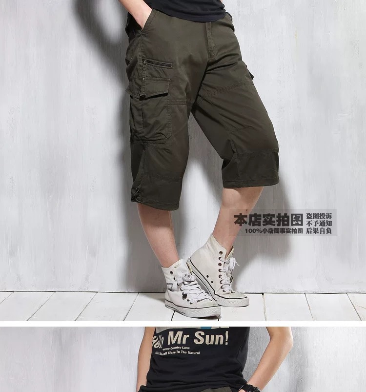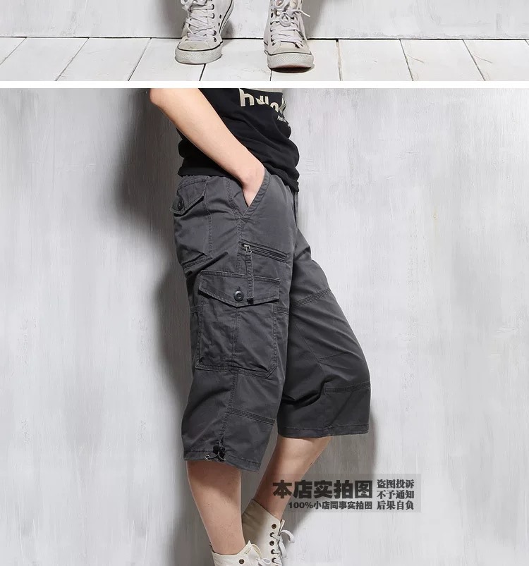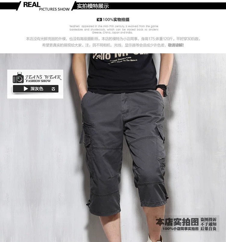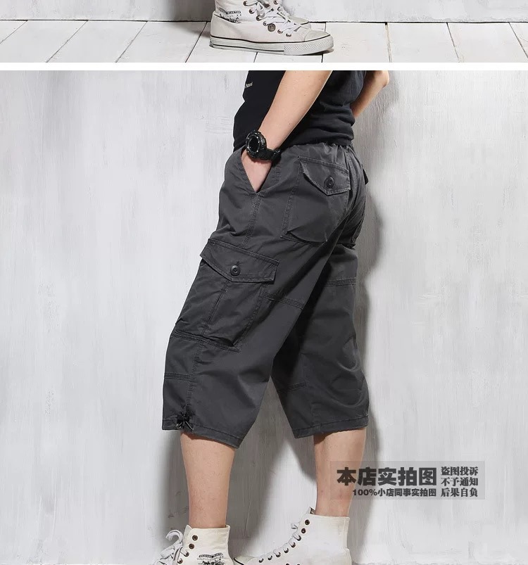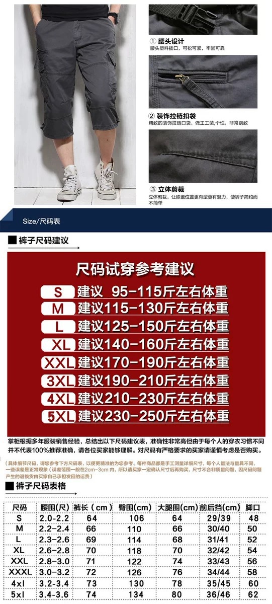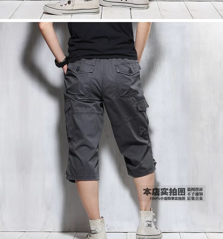 여름 얇은 작업복 카프리 바지 남자의 멀티 포켓 느슨한 플러스 사이즈 바지 야외 착용 스포츠 캐주얼 반바지스토어 가기