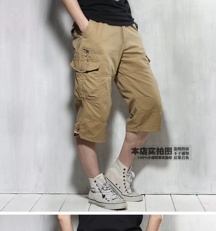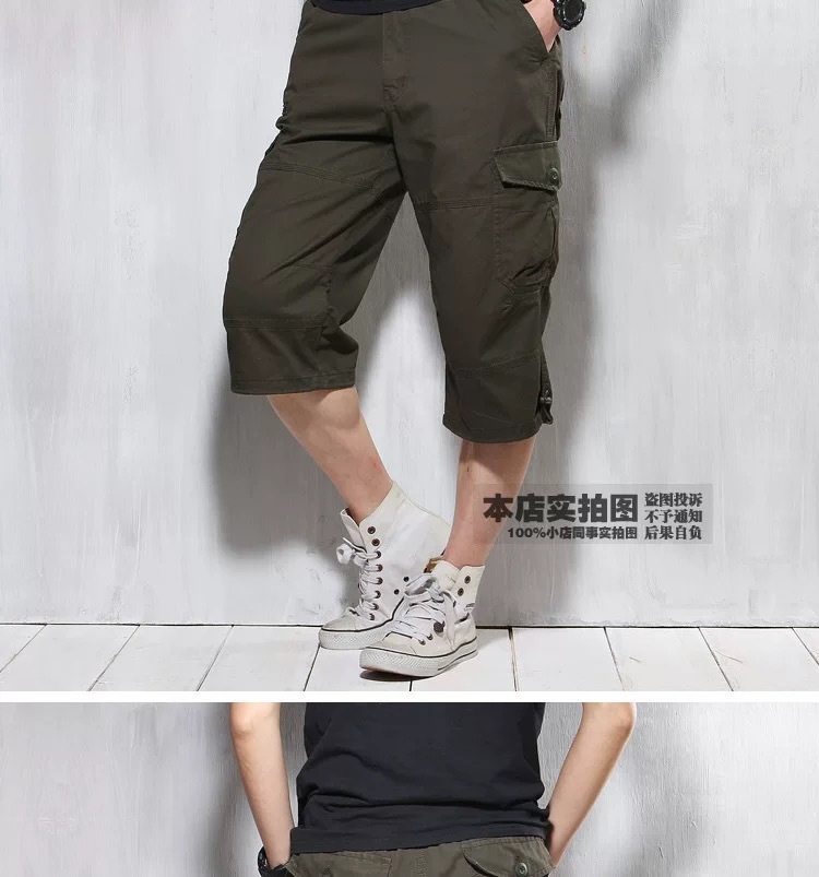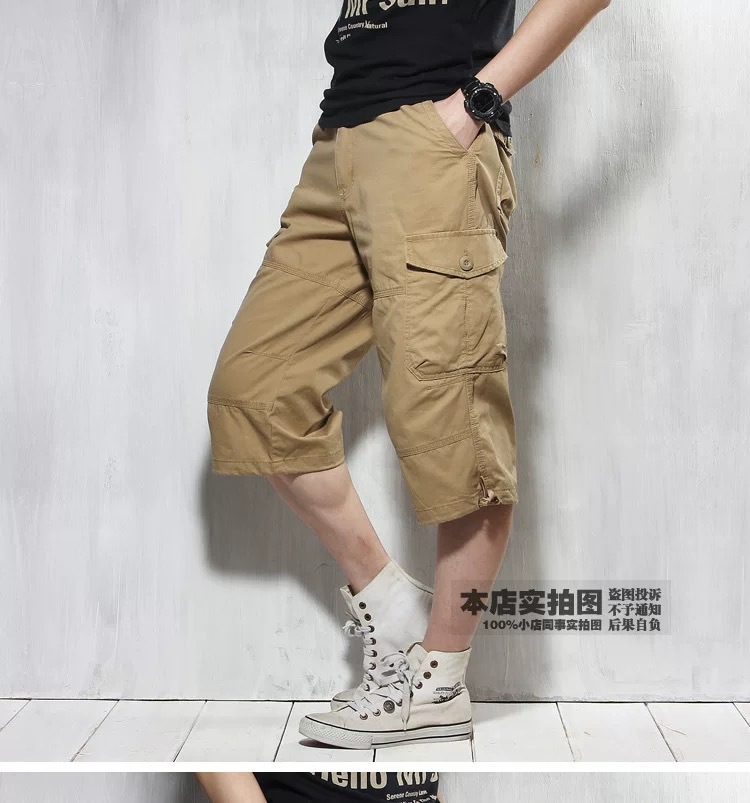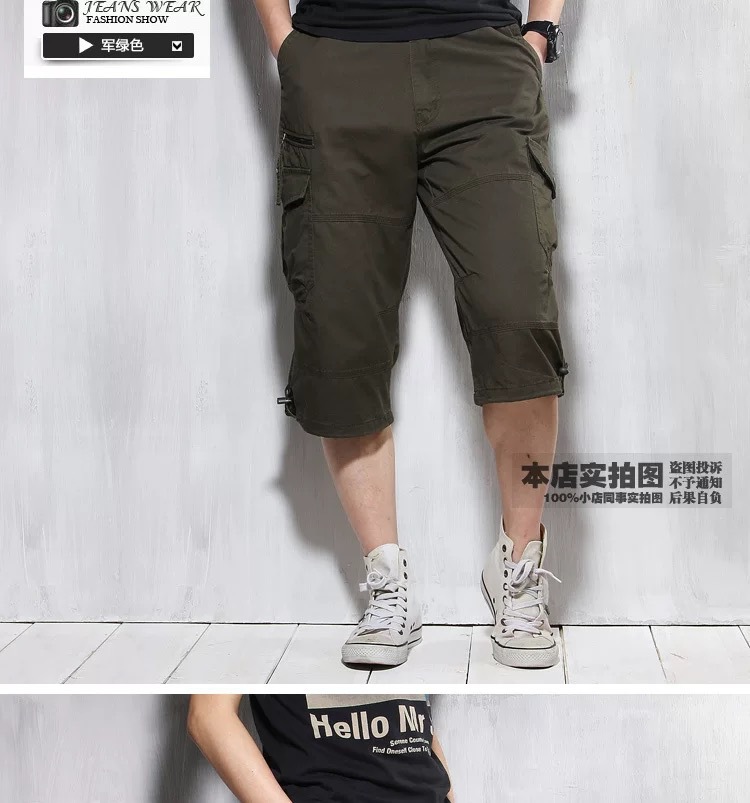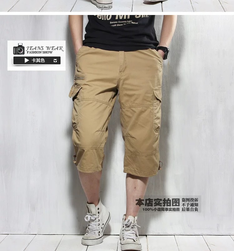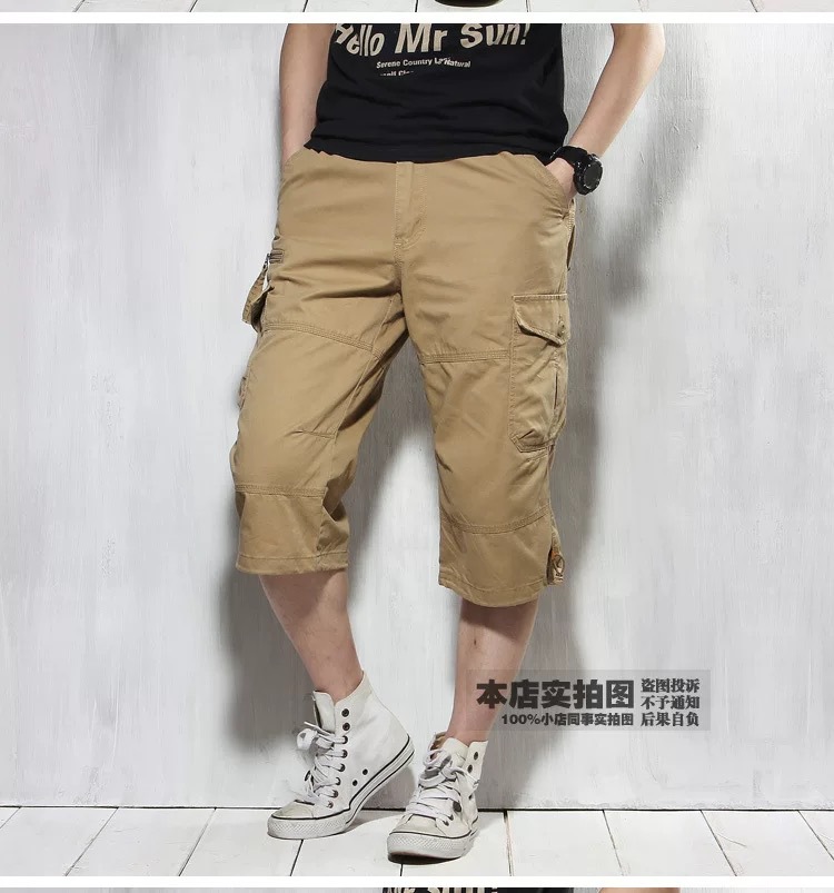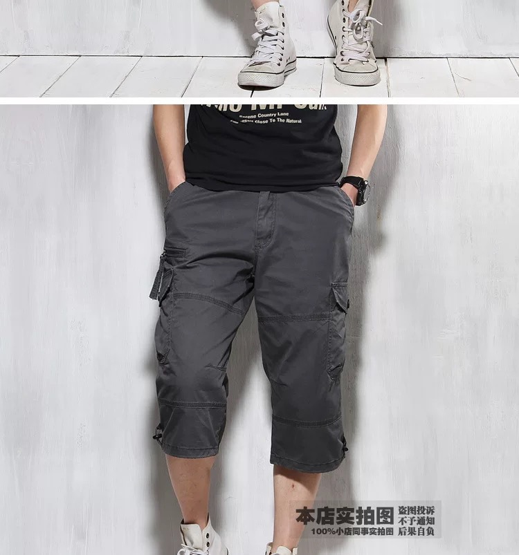 여름 얇은 작업복 카프리 바지 남자의 멀티 포켓 느슨한 플러스 사이즈 바지 야외 착용 스포츠 캐주얼 반바지