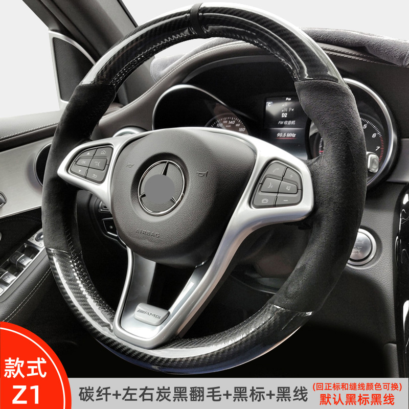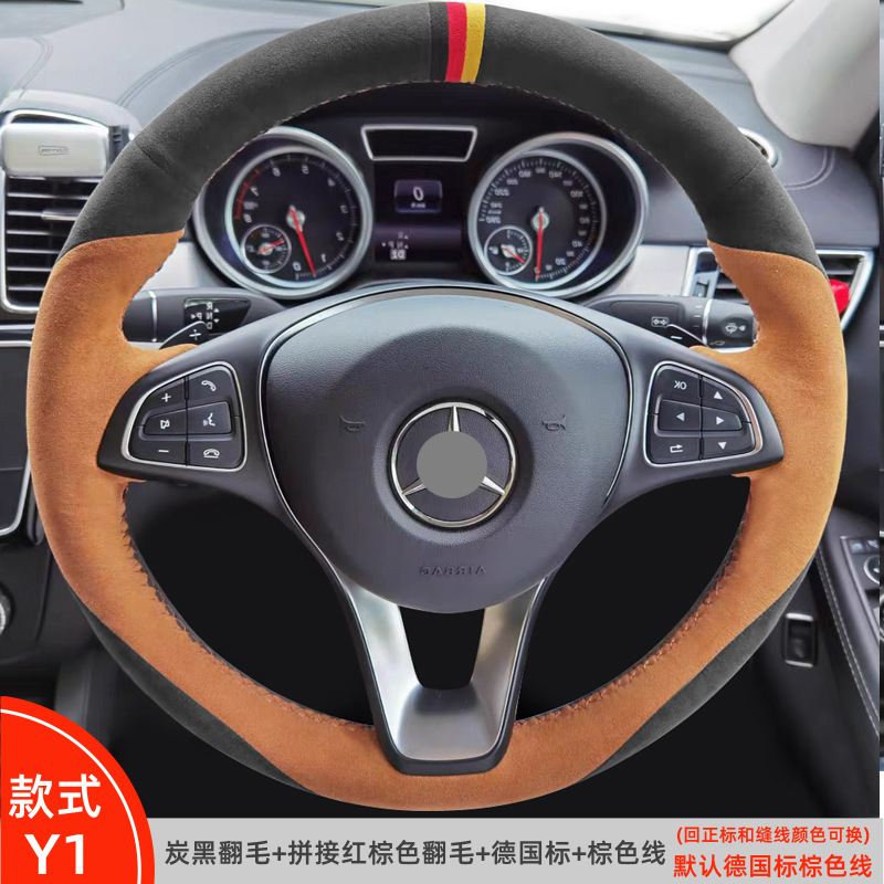 메르세데스 핸드 스티치 스티어링 휠 커버 A200L 스웨이드 E300L 가죽 E 클래스 AMG 용 GLC C200L C260L