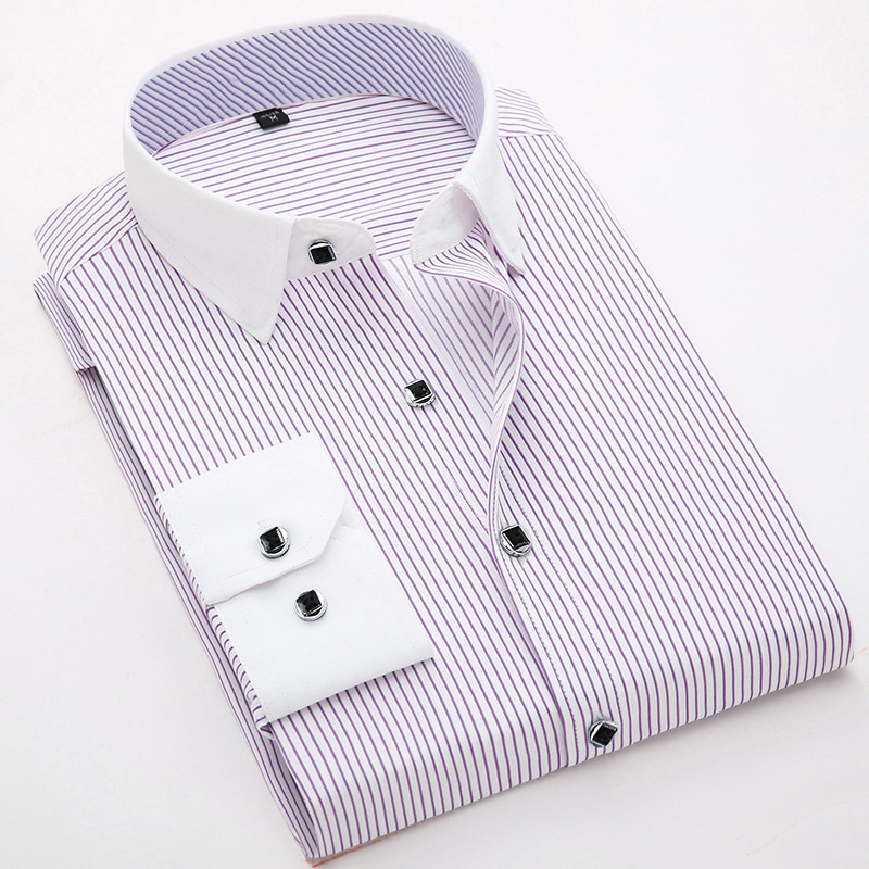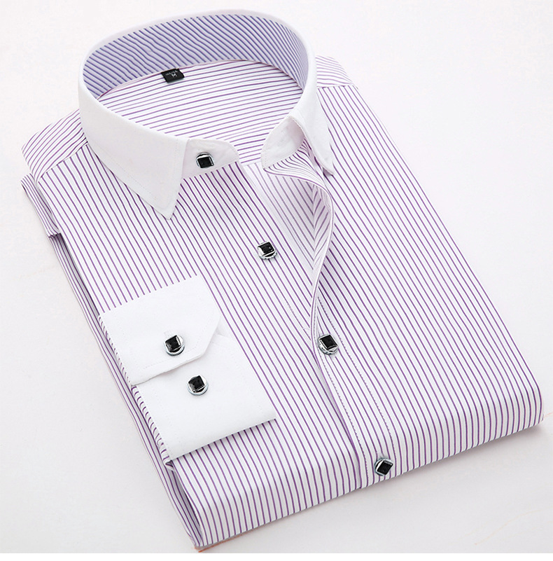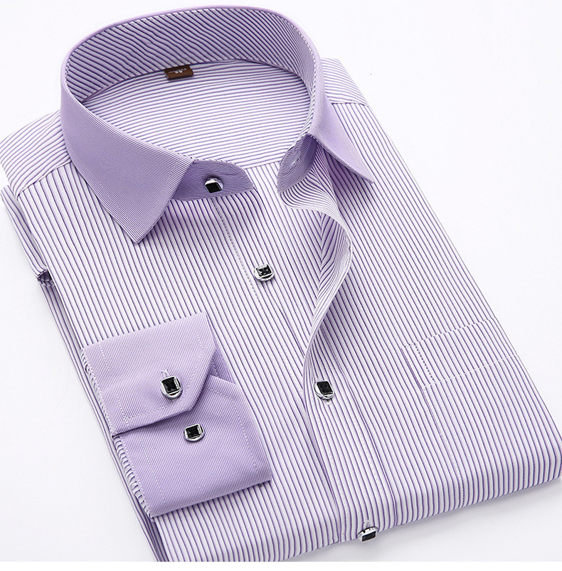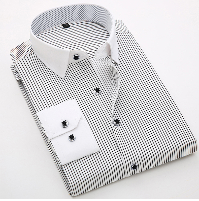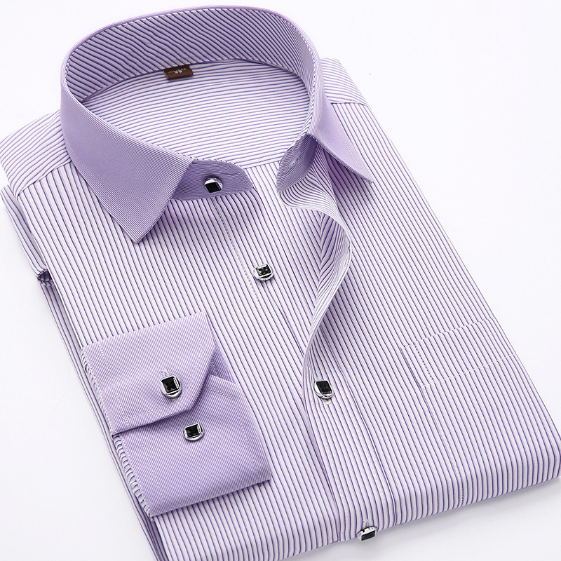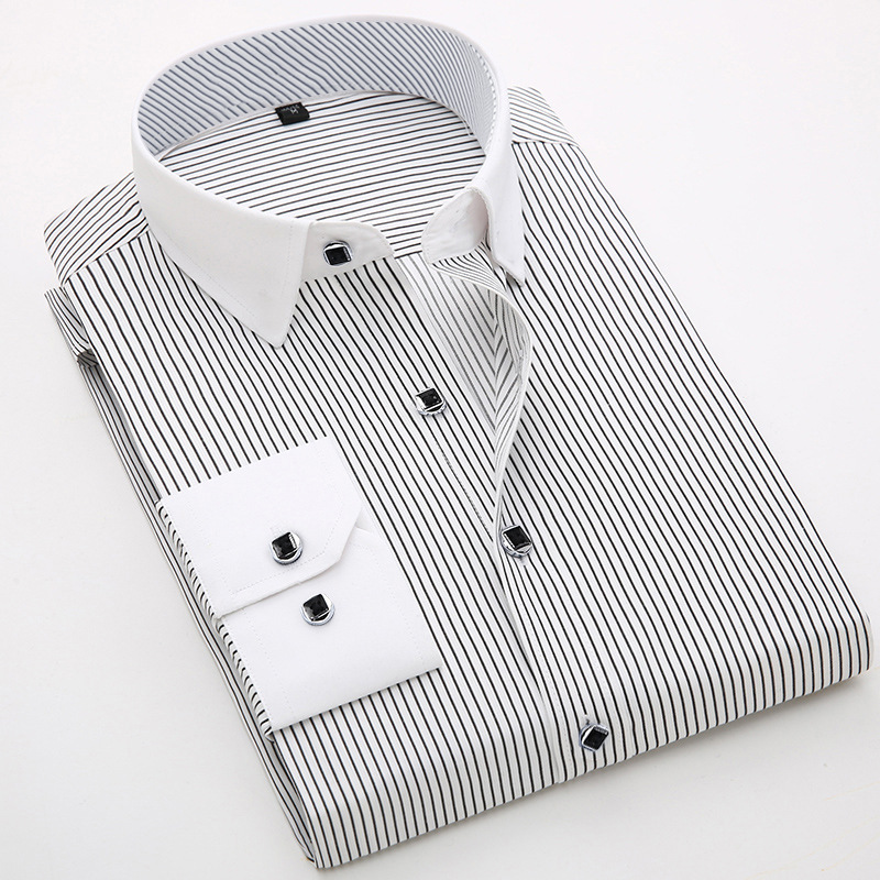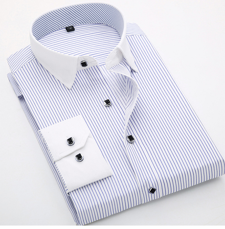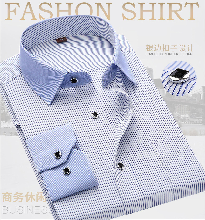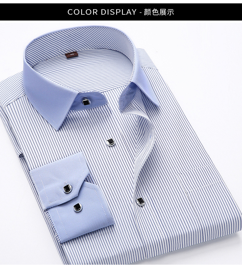 [품질보증] 비즈니스 캐주얼 면 셔츠 남자 긴팔 작업복 슬림 셔츠 스트라이프 패션 인치 셔츠
