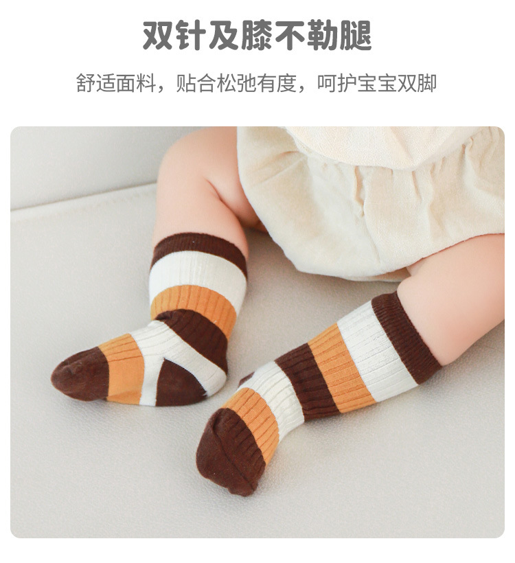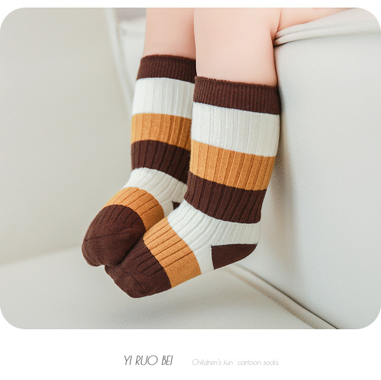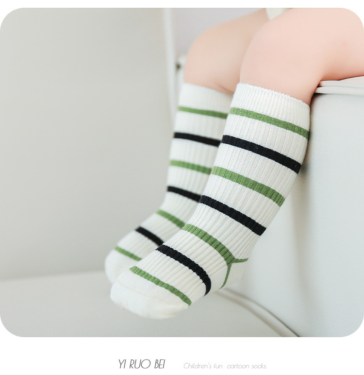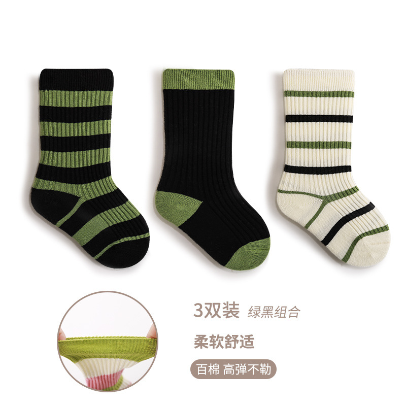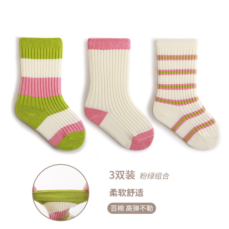 3 쌍 가을과 겨울 순면 97% 빗질 아기 중간 배럴 더블 바늘 양말 유아 소년 소녀 학생 스트라이프스토어 가기