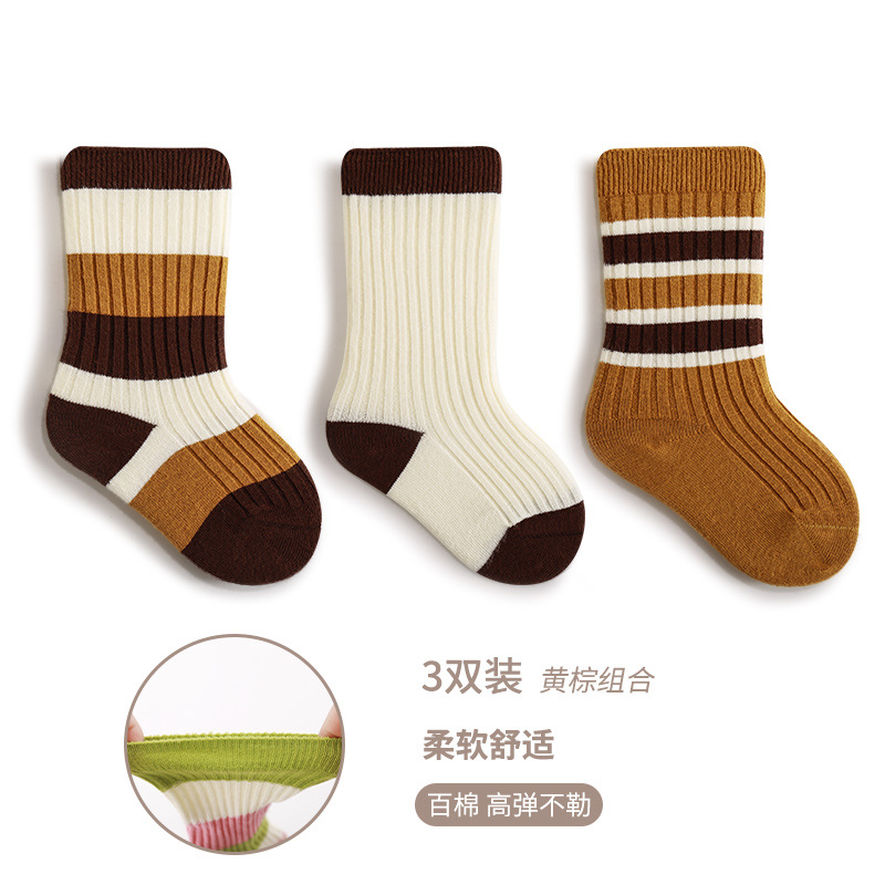 3 쌍 가을과 겨울 순면 97% 빗질 아기 중간 배럴 더블 바늘 양말 유아 소년 소녀 학생 스트라이프
