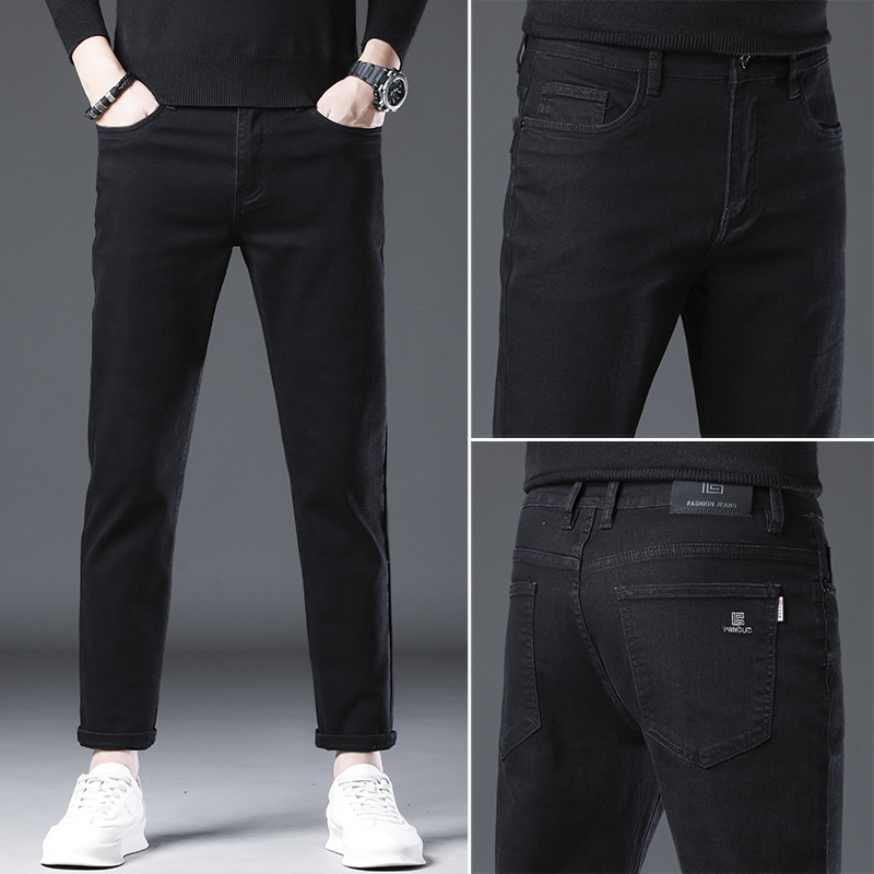 봄과 가을 정사이즈 크롭 청바지 남자의 한국 스타일 스트레이트 느슨한 스트레치 캐주얼 크롭 데님 바지 남자의 유행
