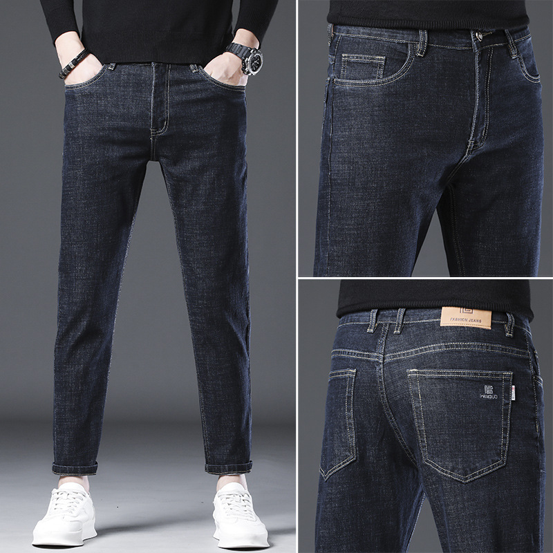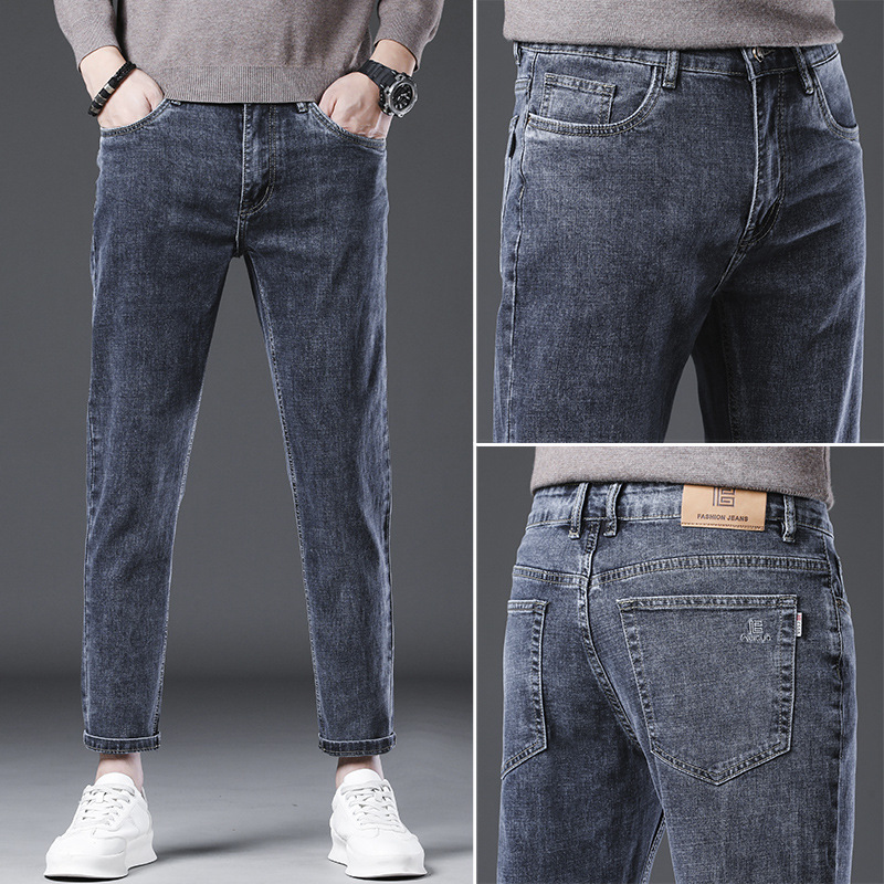 봄과 가을 정사이즈 크롭 청바지 남자의 한국 스타일 스트레이트 느슨한 스트레치 캐주얼 크롭 데님 바지 남자의 유행스토어 가기
