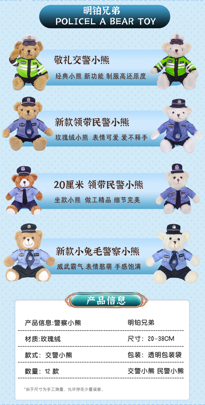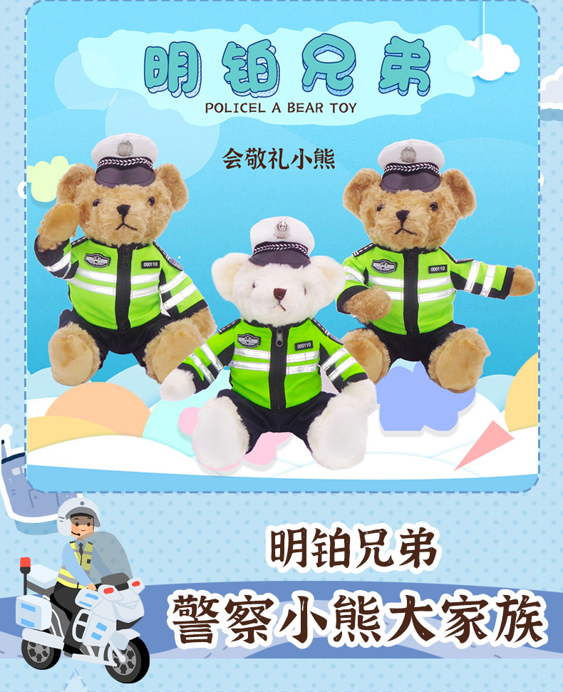 경찰 새끼 곰 인형 교통 경찰 새끼 놀이 유니폼 경찰관 유니폼 인형 테디 베어 봉제 장난감 소녀 어린이 선물