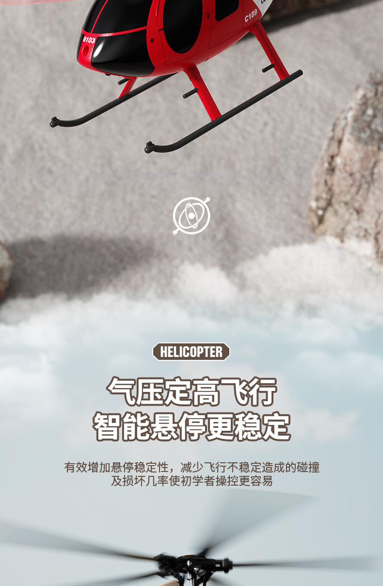 产品名称:C189四通单桨无副翼像真版直升机(定高版)1:28