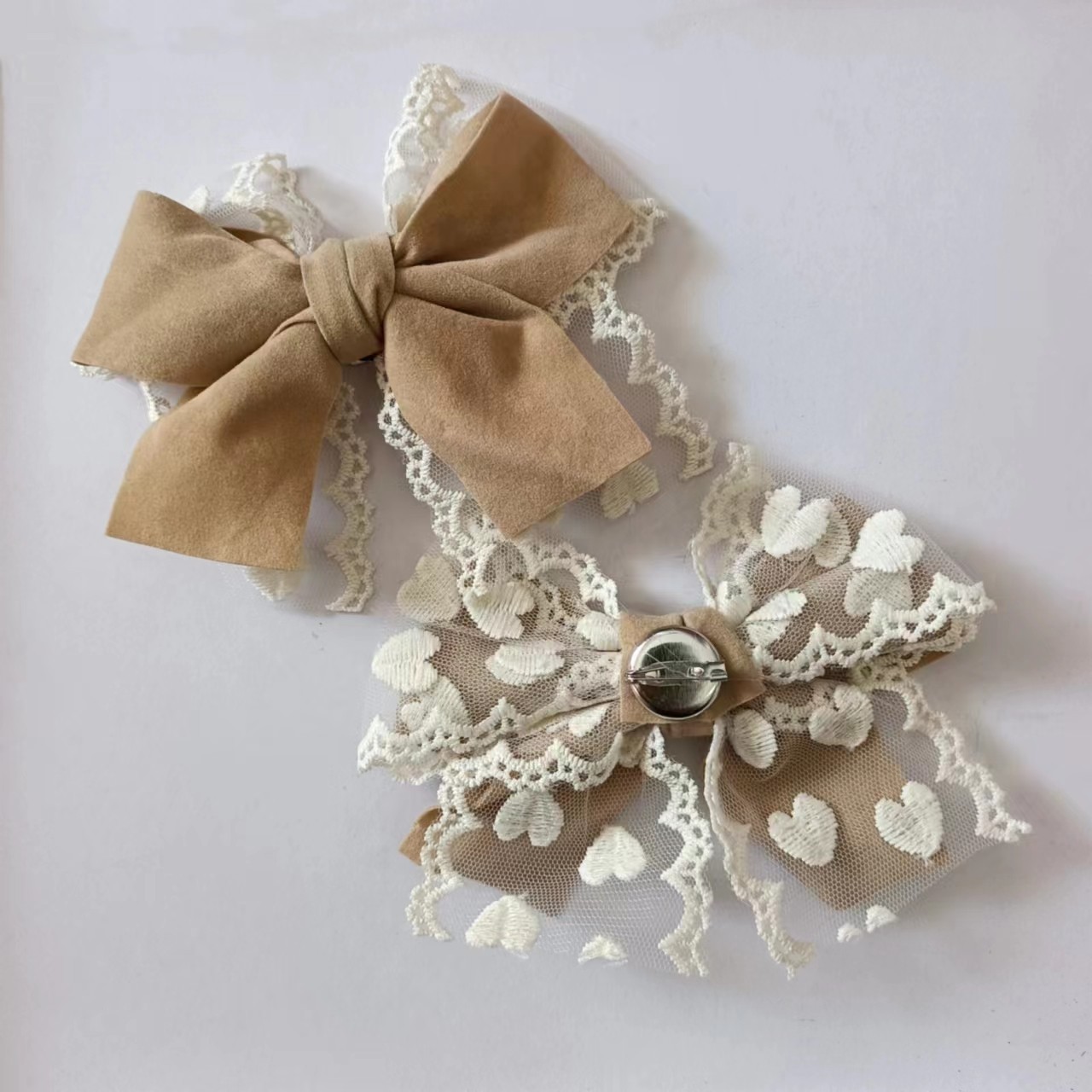 • 버튼 헤더가 있는 밝은 갈색 이중층 활(핀)