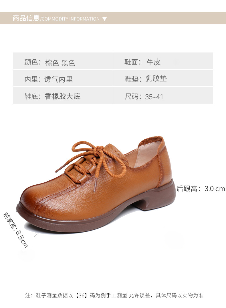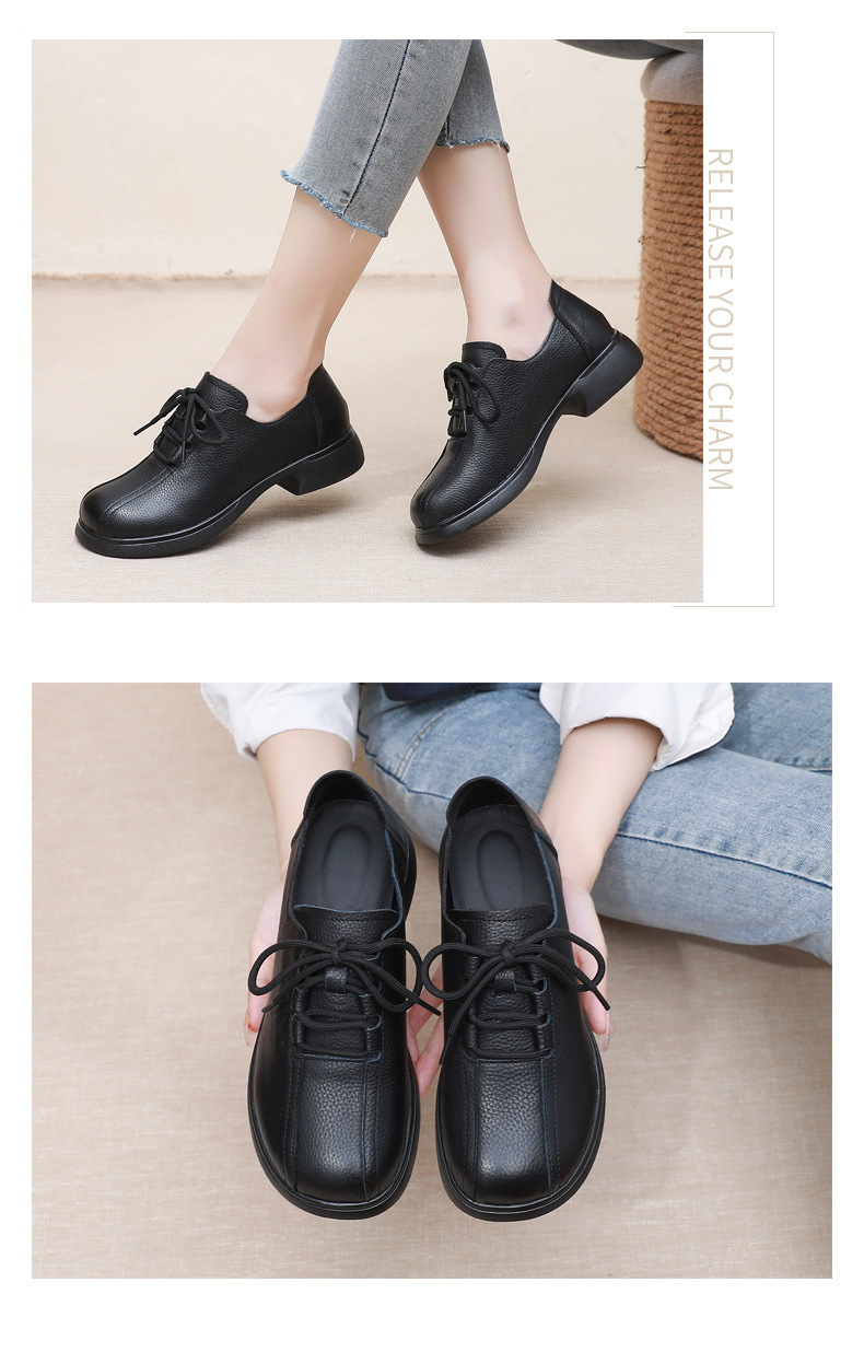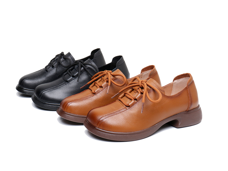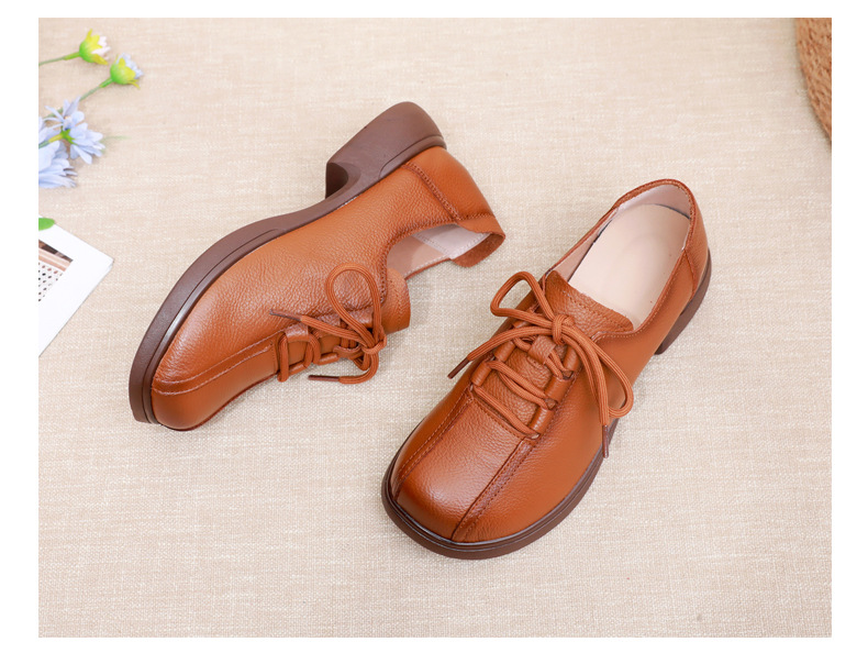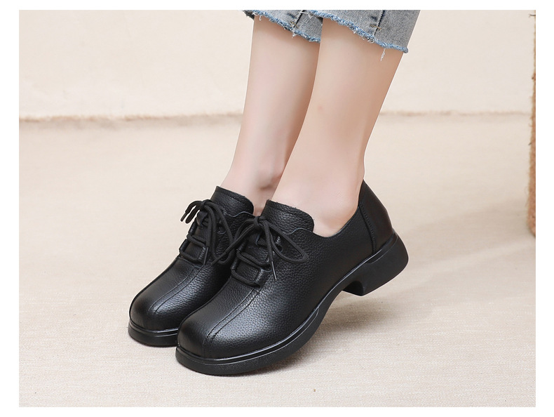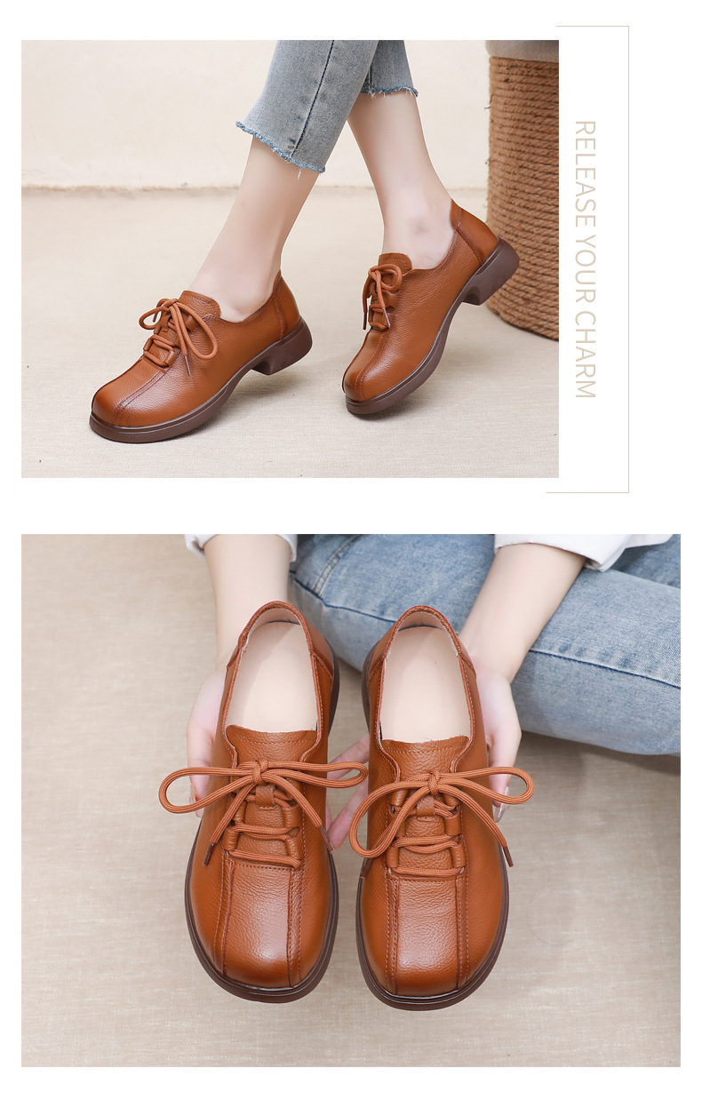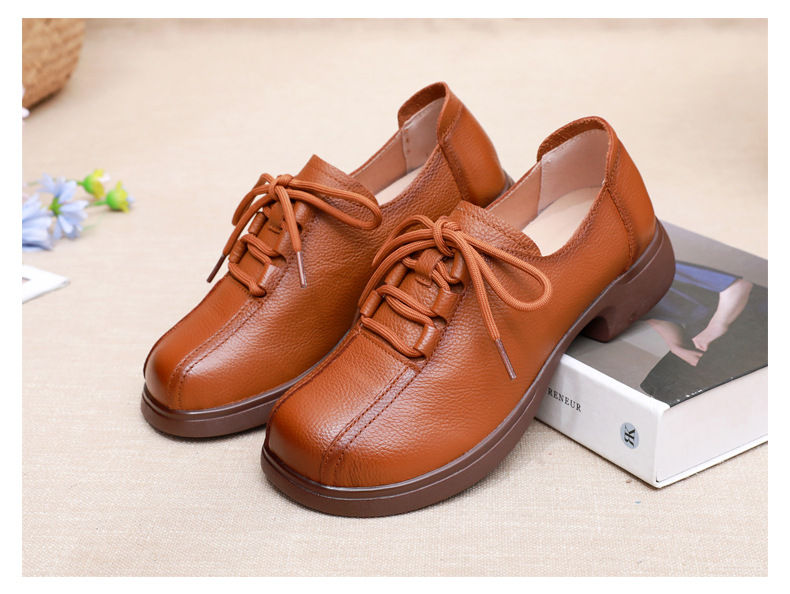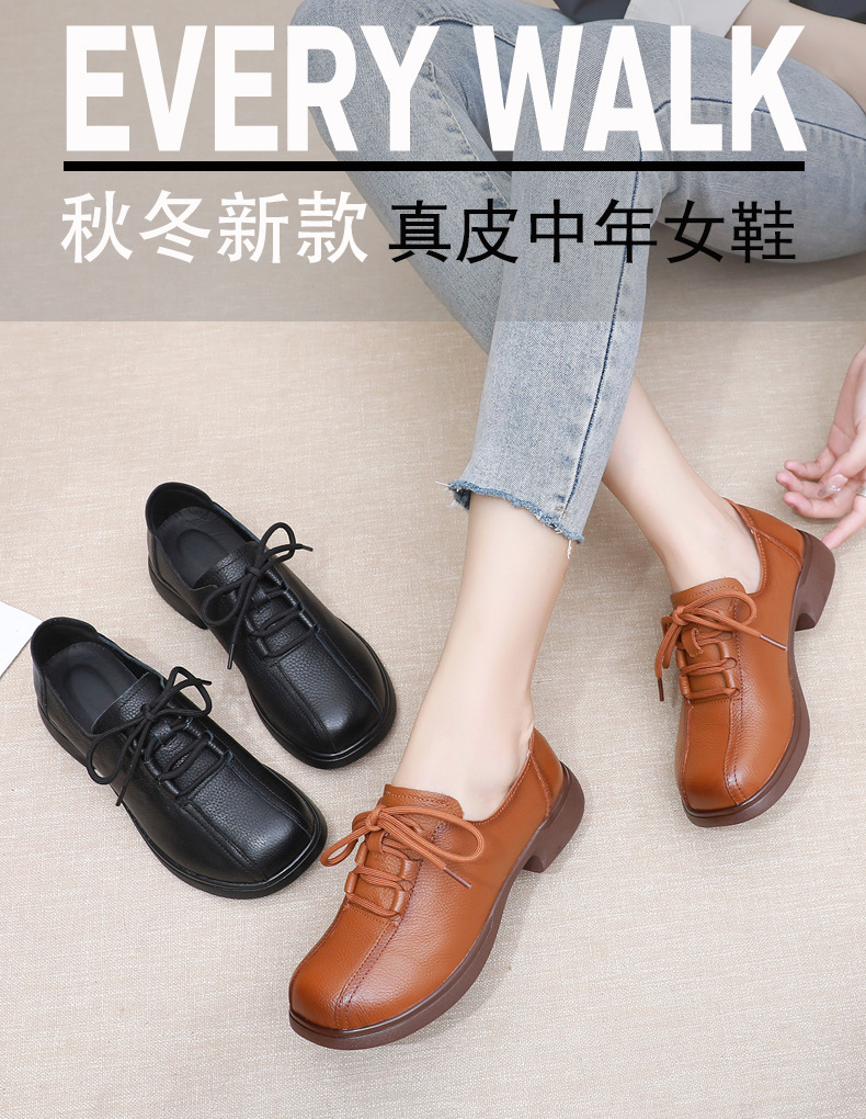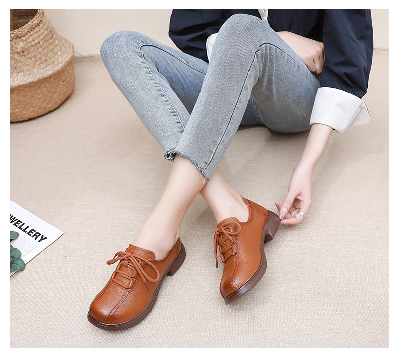 가을과 겨울 정품 가죽 어머니 신발 편안한 모든 매치 레이스업 캐주얼 가죽 신발 중년 및 노인 여성 신발 댄싱 신발 깊은 입 단일 레이어 신발스토어 가기