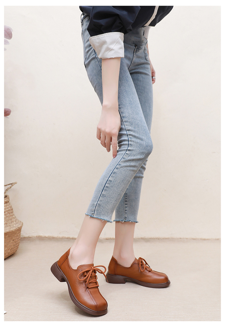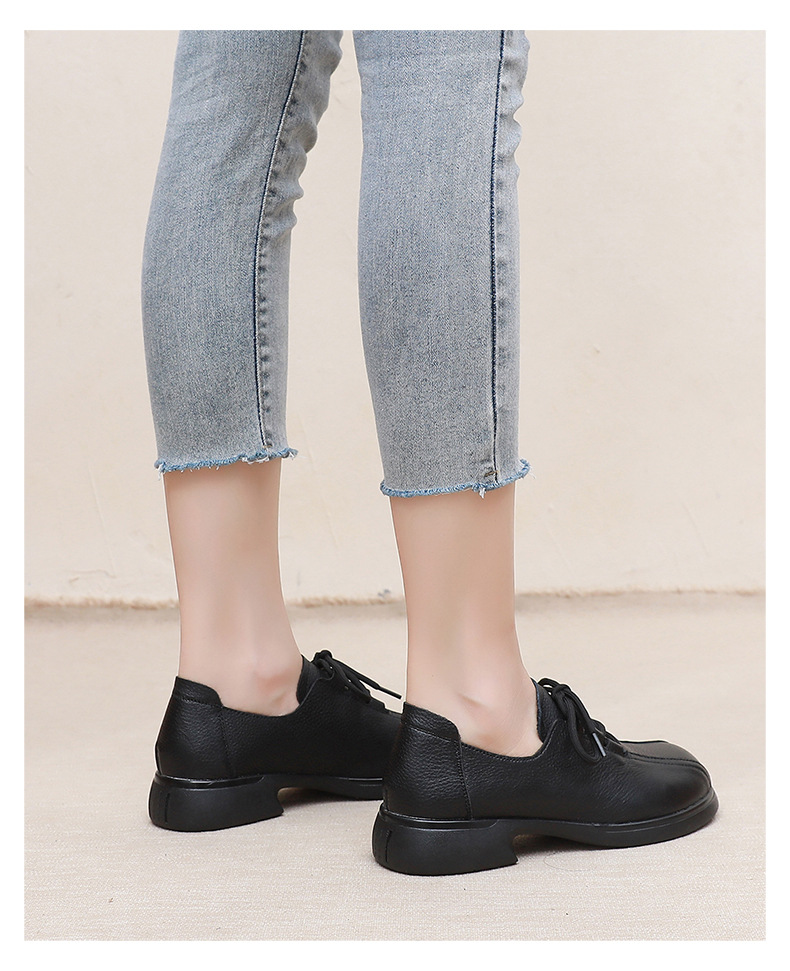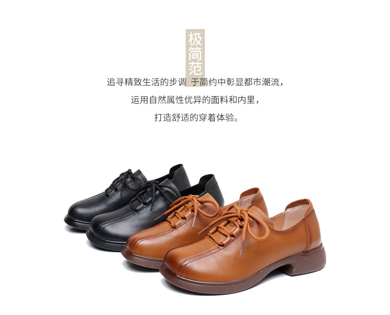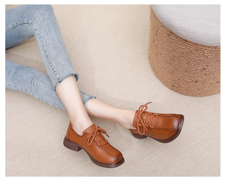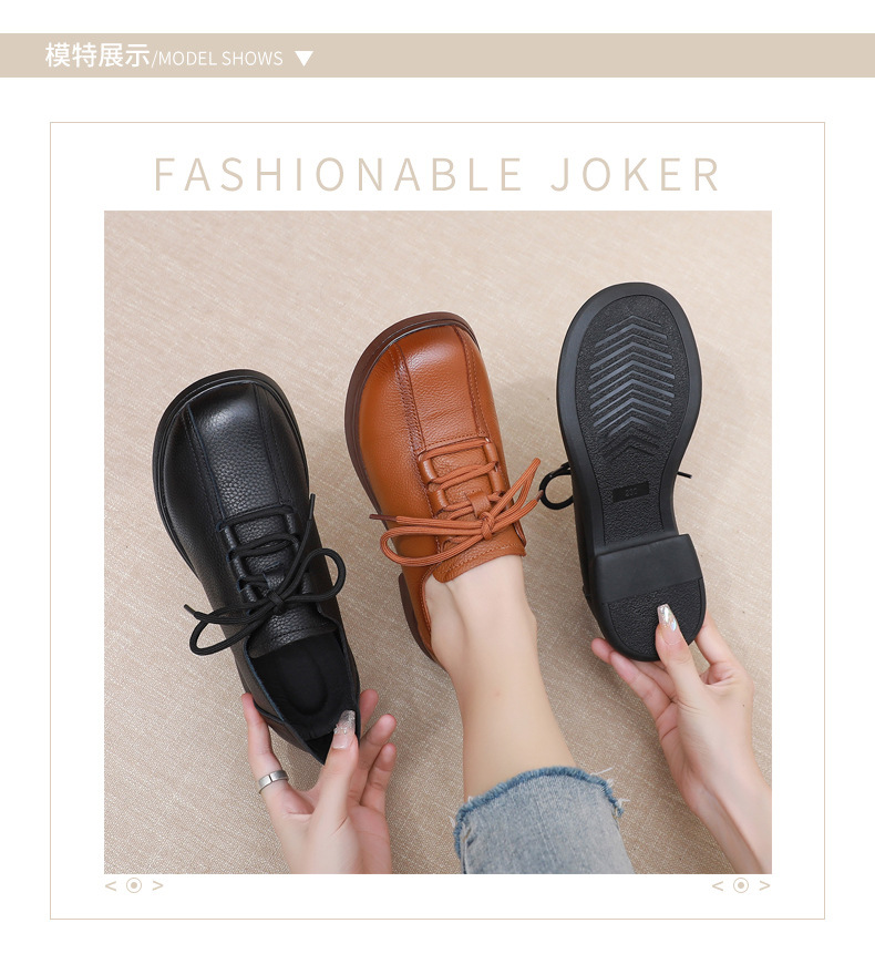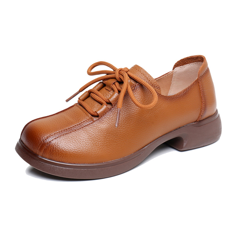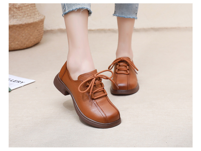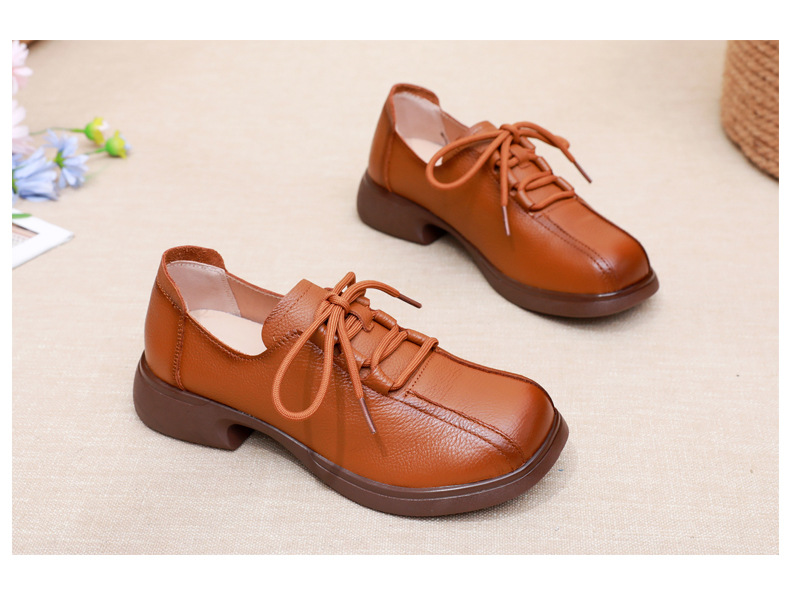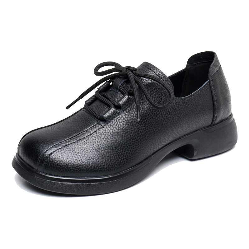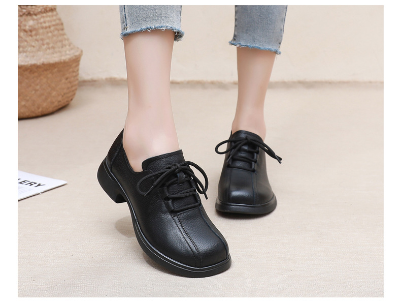 가을과 겨울 정품 가죽 어머니 신발 편안한 모든 매치 레이스업 캐주얼 가죽 신발 중년 및 노인 여성 신발 댄싱 신발 깊은 입 단일 레이어 신발스토어 가기