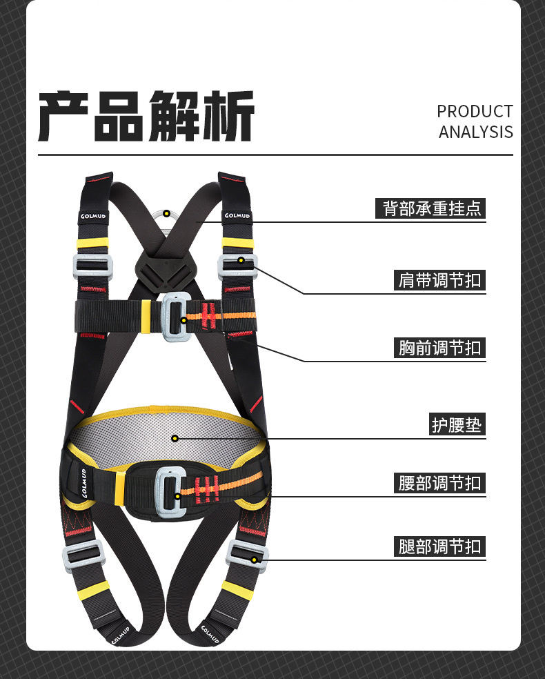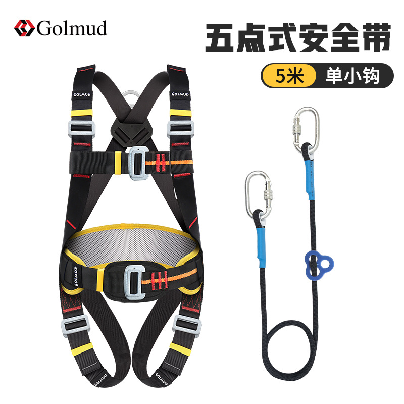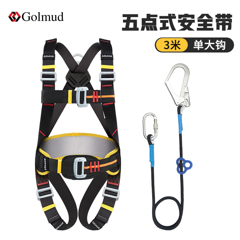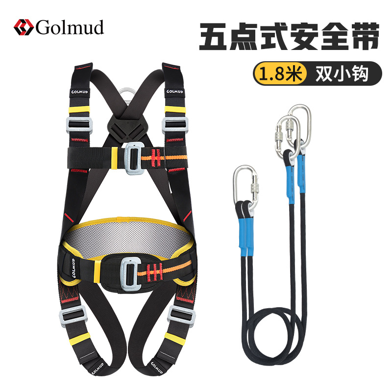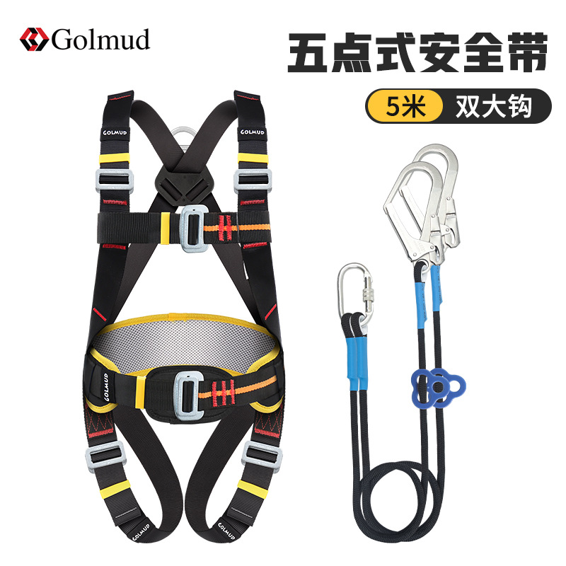 Gorm 전신 5 점 안전 벨트 GD3739 국가 표준 공중 작업 더블 후크 에어컨 안전 로프 세트