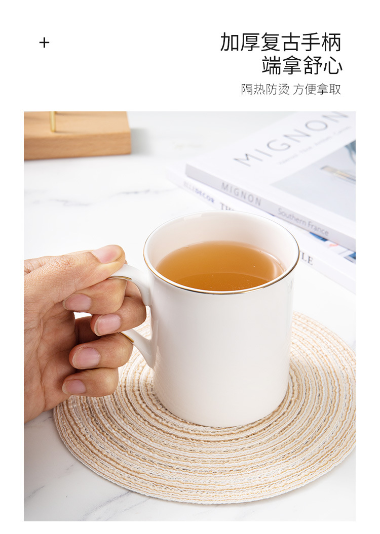 도매 가정용 흰색 간단한 세라믹 우유 컵 마시는 컵 중추절 광고 선물 골드 림 본차이나 머그잔