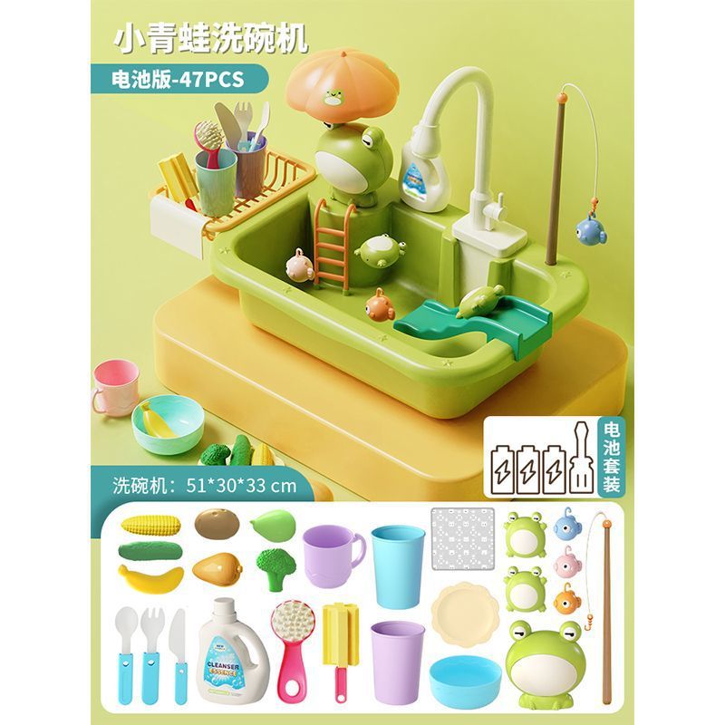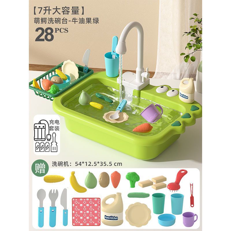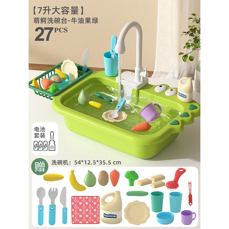 어린이 식기 세척기 장난감 주방 놀이 집 싱크 야채 싱크 수도꼭지 순환 물 아기 놀이 소녀