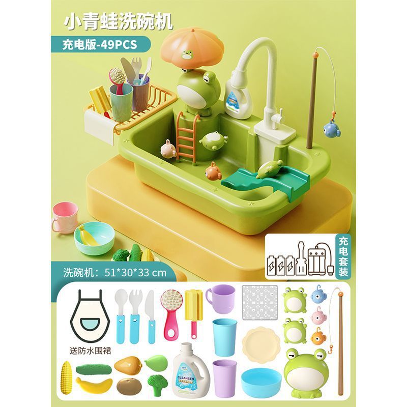 • [꼬마 개구리 낚시 식기 세척대] 앞치마 + 충전 세트