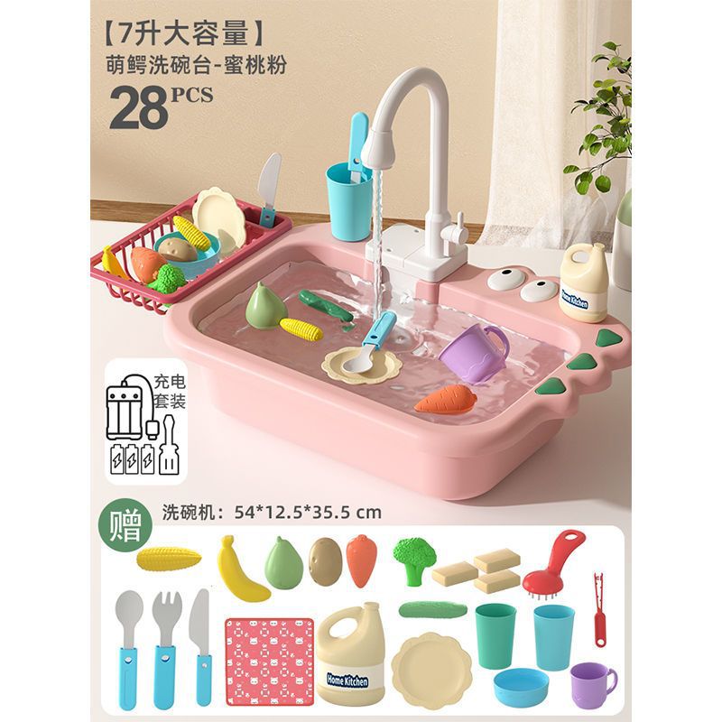 어린이 식기 세척기 장난감 주방 놀이 집 싱크 야채 싱크 수도꼭지 순환 물 아기 놀이 소녀스토어 가기