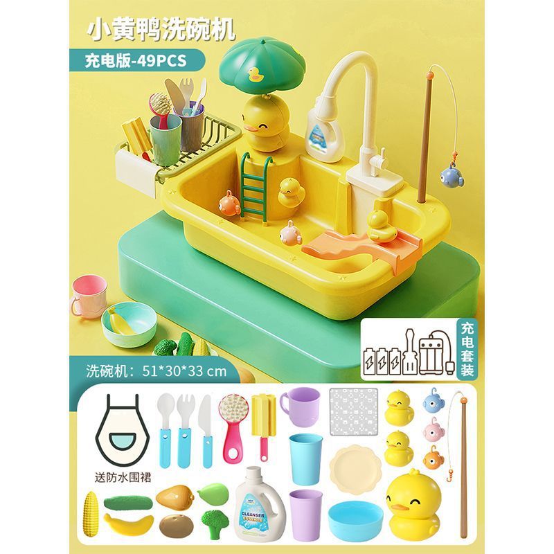 • [노랑 오리 낚시 식기 세척대] 앞치마 + 충전 세트
