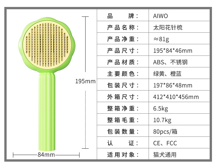 애완 동물 스프레이 빗 고양이 청소 마사지 빗 머리 제거 부동 브러시 바늘 빗 자체 청소 머리 제거제 빗