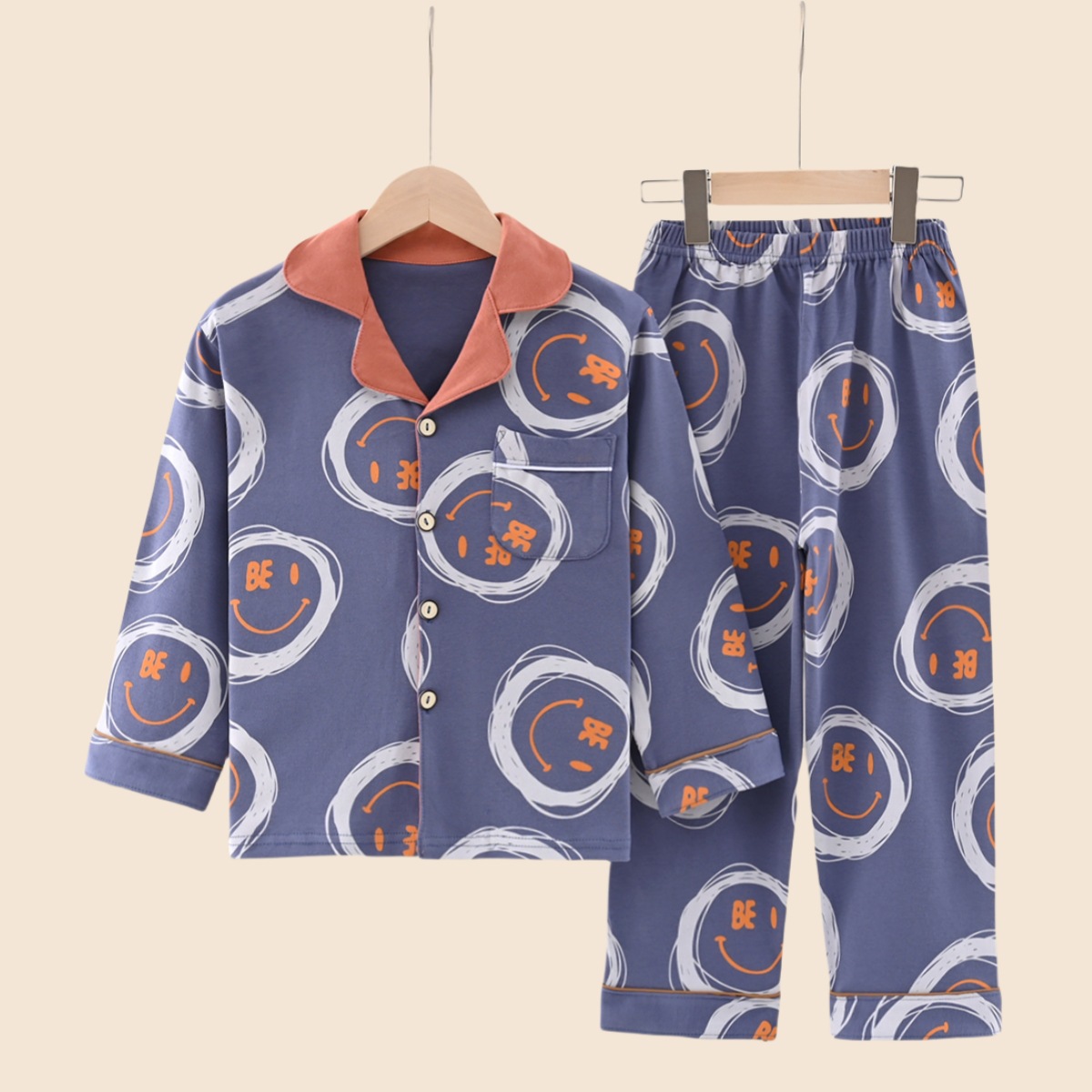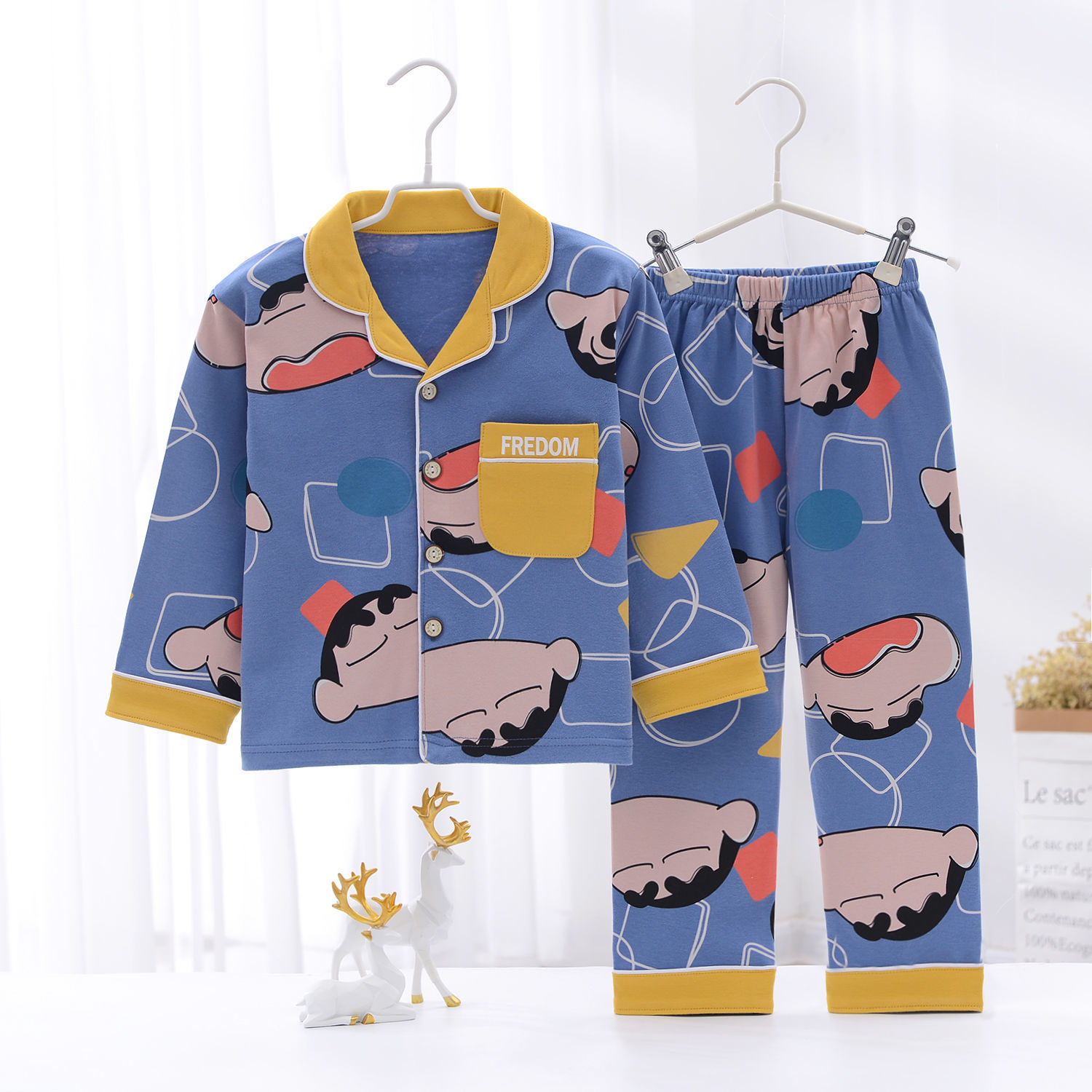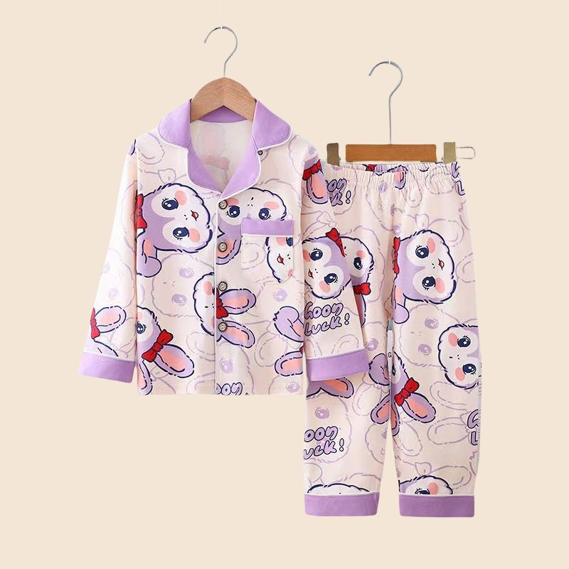 봄과 가을 면 어린이 잠옷 소년과 소녀 카디건 긴 소매 옷깃 홈 옷 소년과 소녀를위한 만화 캐주얼 잠옷