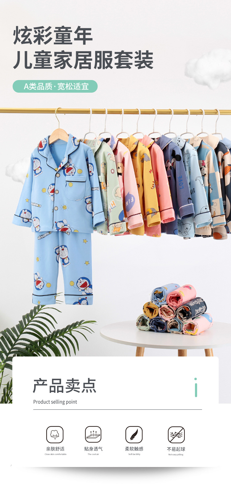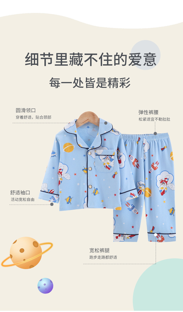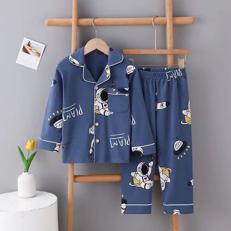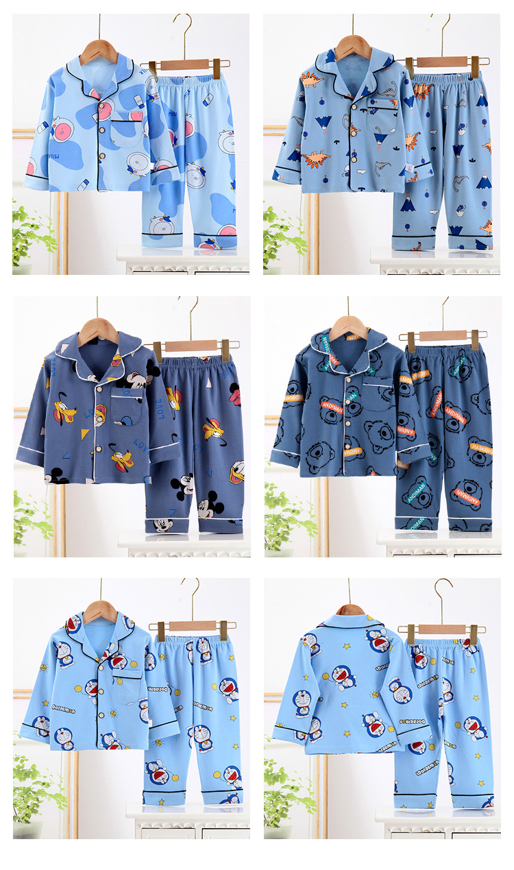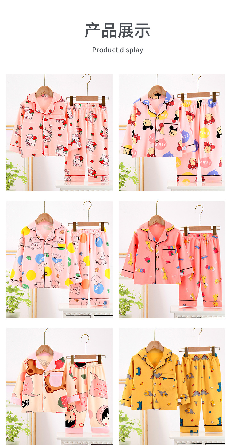봄과 가을 면 어린이 잠옷 소년과 소녀 카디건 긴 소매 옷깃 홈 옷 소년과 소녀를위한 만화 캐주얼 잠옷스토어 가기