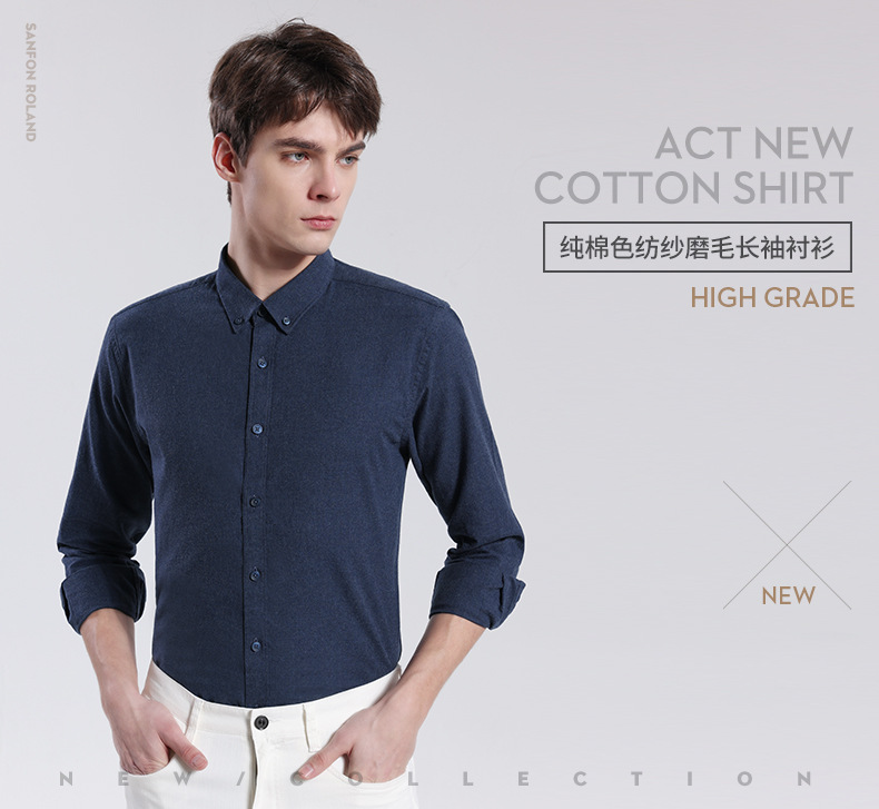 【컬러스펀드사】가을 겨울 순면 기모 컬러스펀드사 단색 셔츠 도매 남성용 긴팔 비즈니스 셔츠스토어 가기
