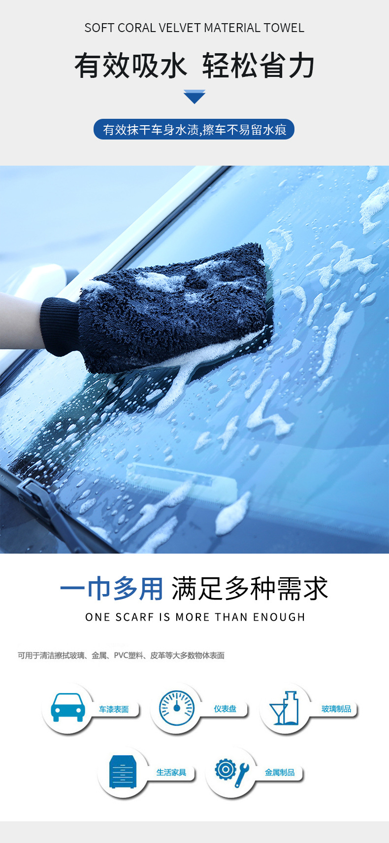 세차용 미세섬유 장갑, 두꺼운 흡수성 자동차 청소 도구, 세차 타월 도매스토어 가기