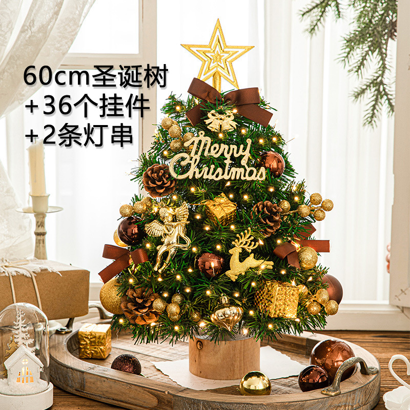 • 【크리스마스 캠핑 장식】 60cm 크리스마스 트리 + 장식품 36개 + 전구 스트링 2개 + 나무 그루터기